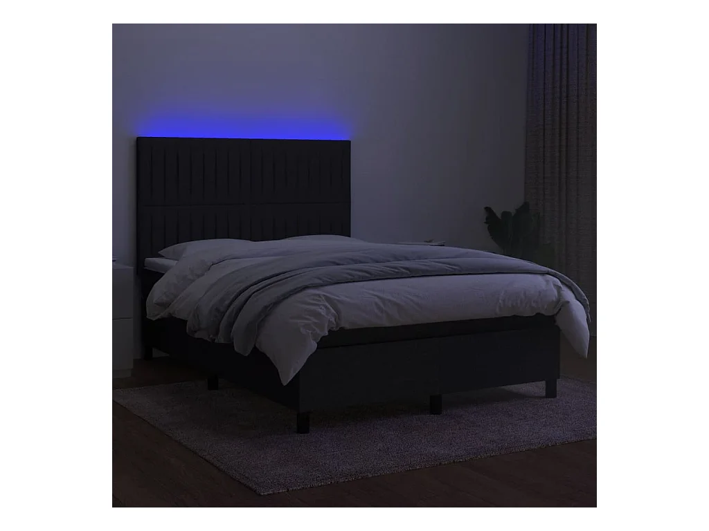 Sommier tapissier avec matelas et LED Noir 140x190 cm Tissu