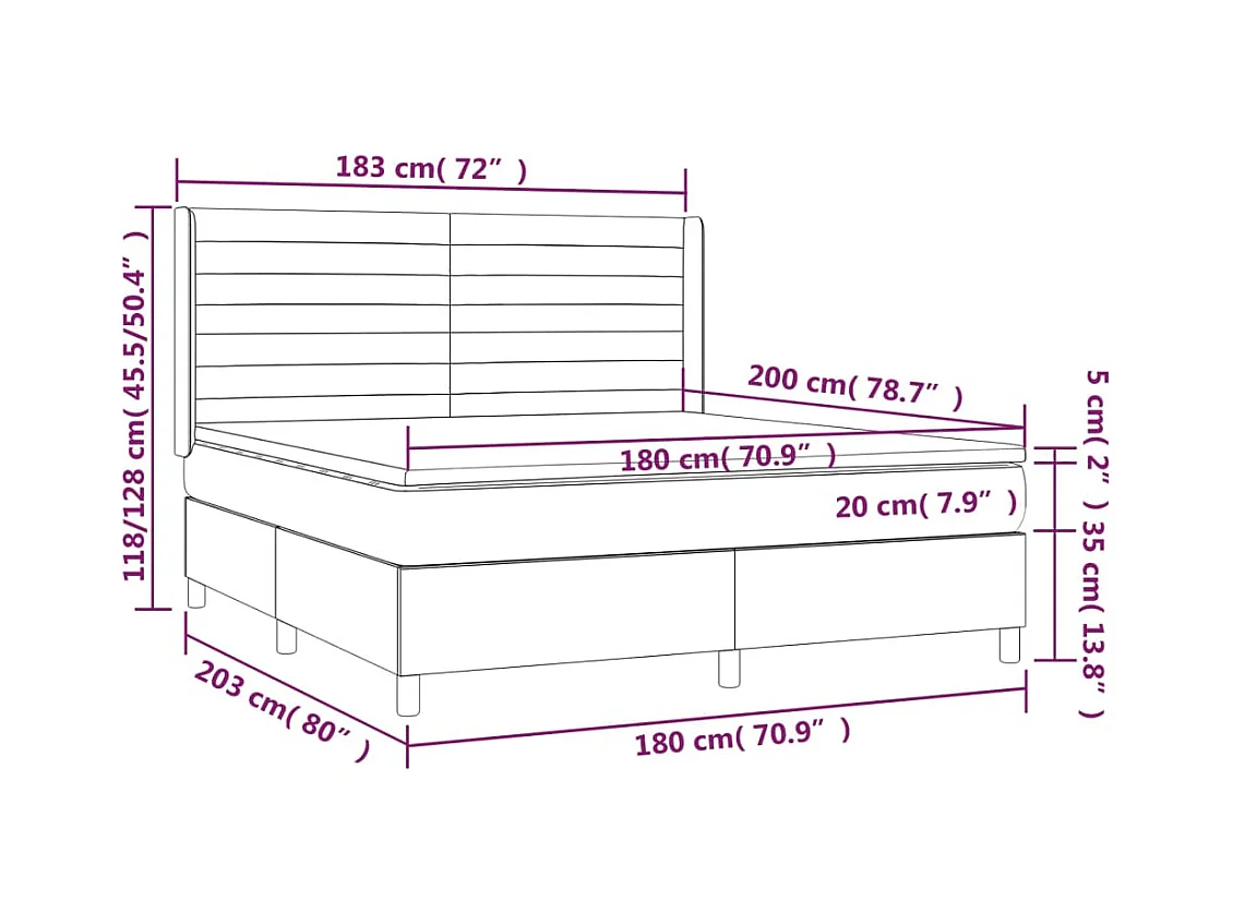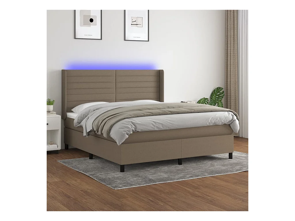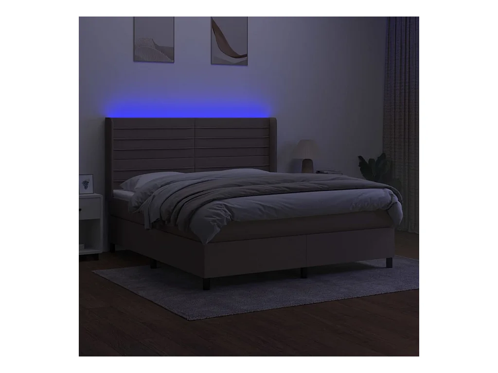 Sommier tapissier avec matelas et LED Taupe 180x200 cm Tissu