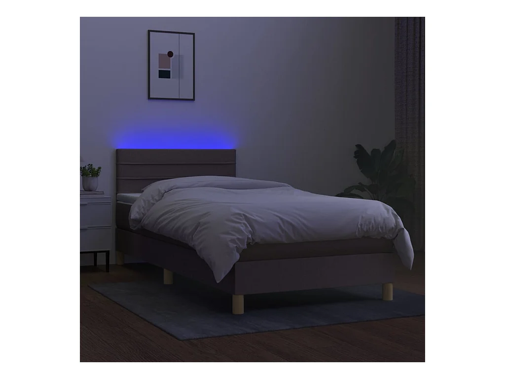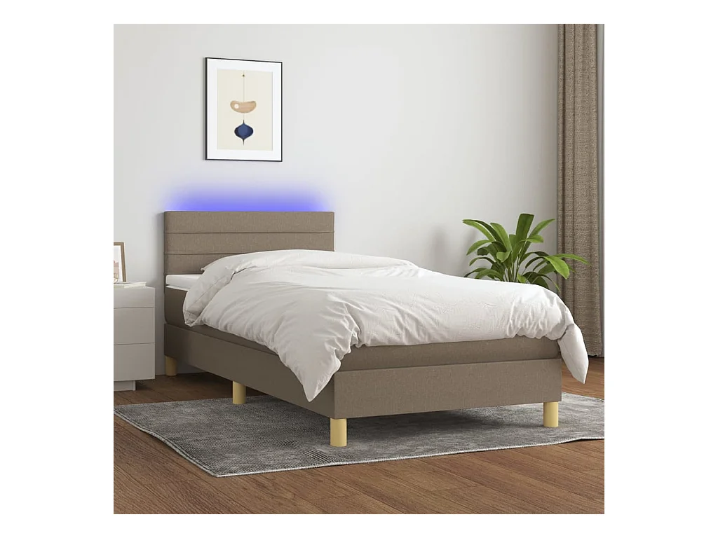 Sommier tapissier avec matelas et LED Taupe 90x190 cm Tissu