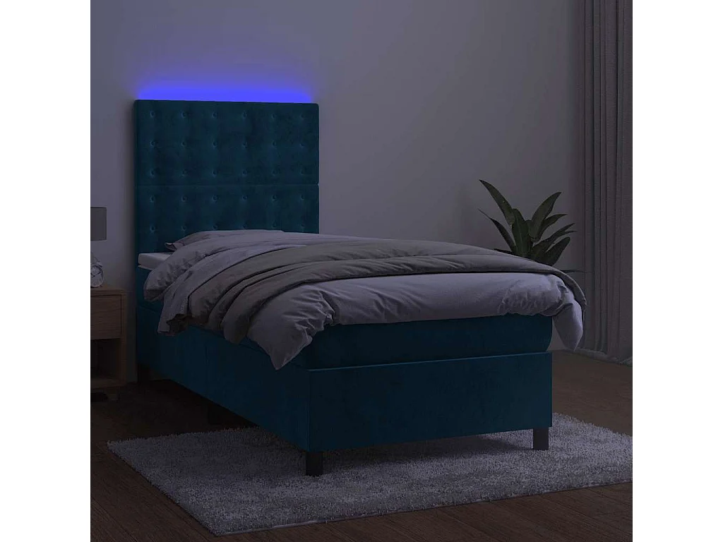 Sommier à lattes de lit et matelas et LED Bleu foncé 80x200 cm