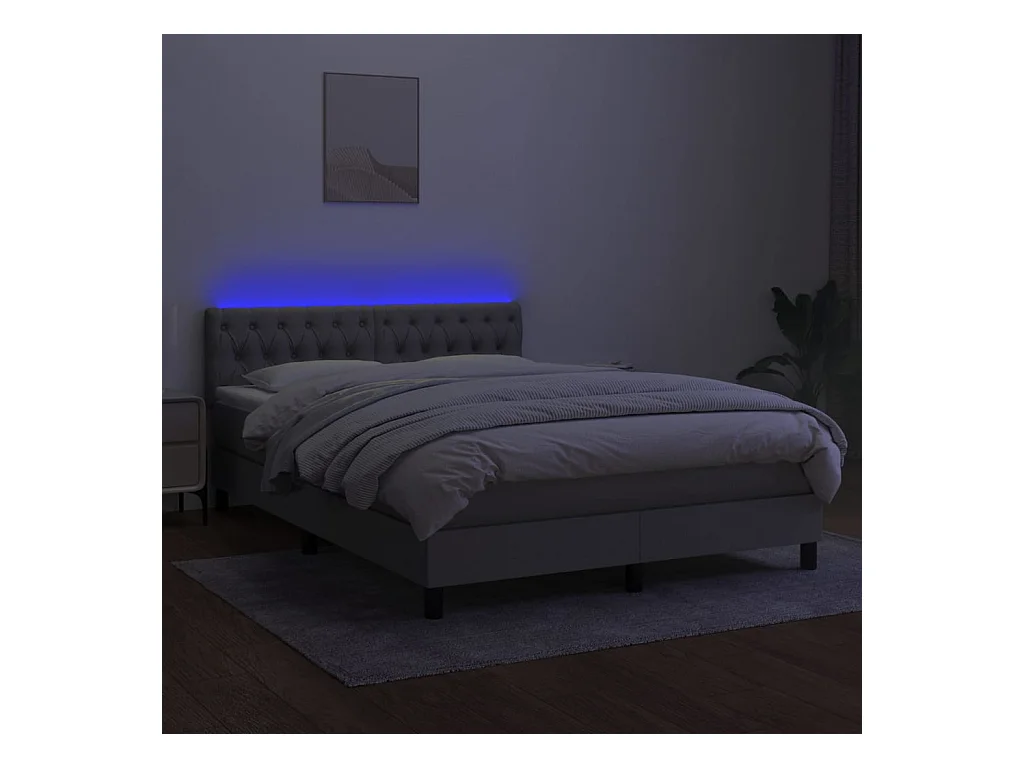 Sommier tapissier et matelas et LED Gris clair 140x190 cm Tissu