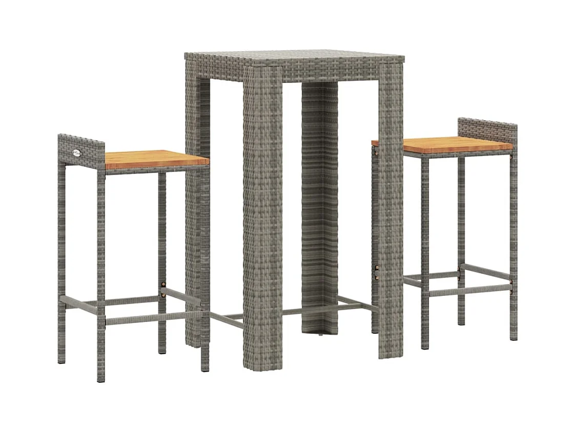 Pierre-Guillaume Ensemble de bar jardin 3 pcs gris poly rotin/bois massif acacia