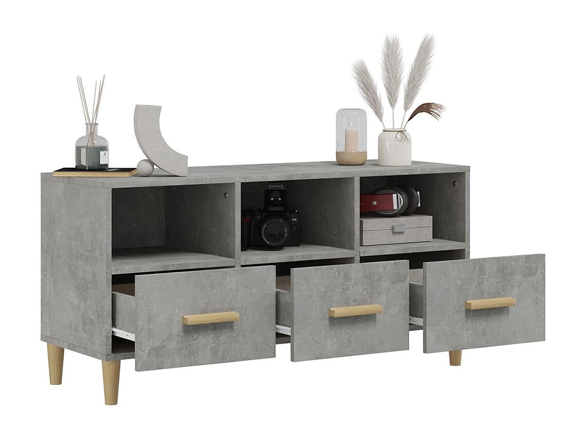 Sophie-Françoise Meuble TV gris béton 102x36x50 cm bois d'ingénierie