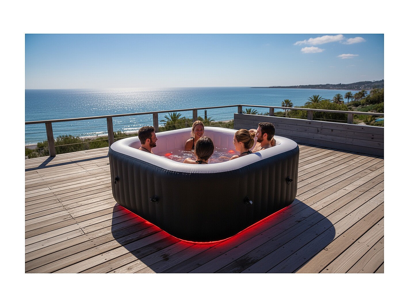Spa gonflable 6 places carré - Sunspa - Bandeau LED inclus - Dimensions : 185 x 185 cm