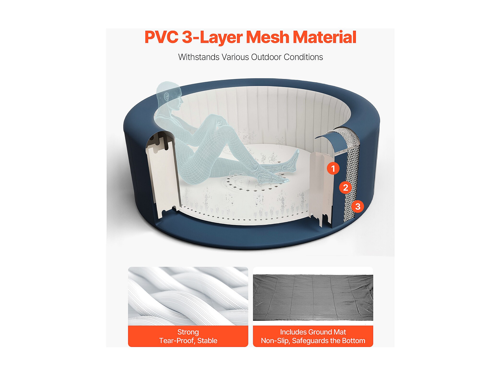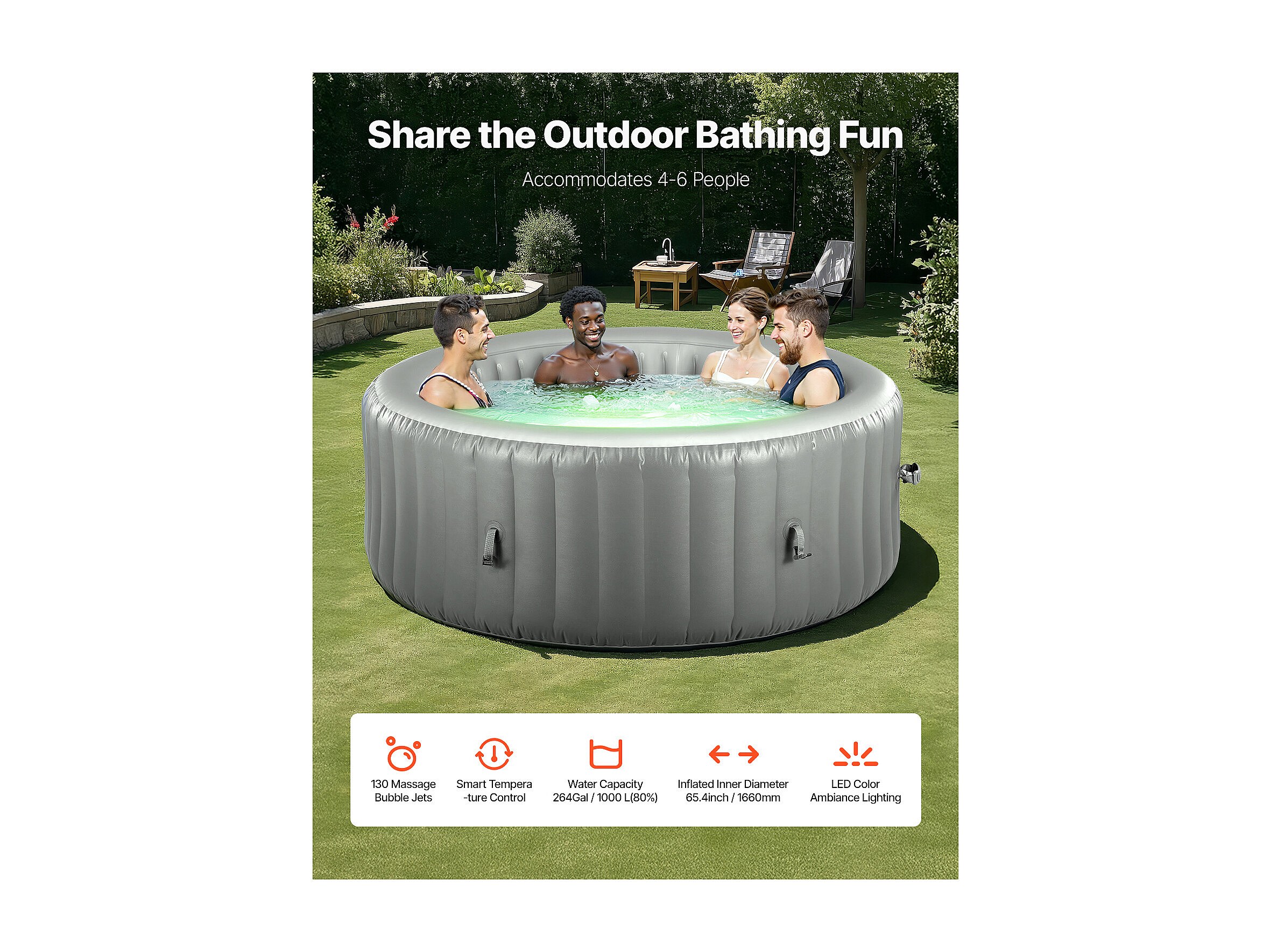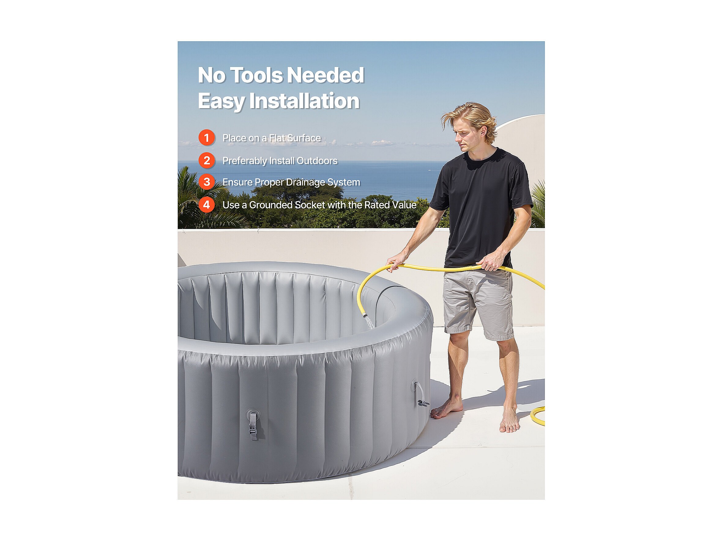 Spa Gonflable Rond Bains SucceBuy, à Remous d’Extérieur Portable, 208x 66 cm, Gris