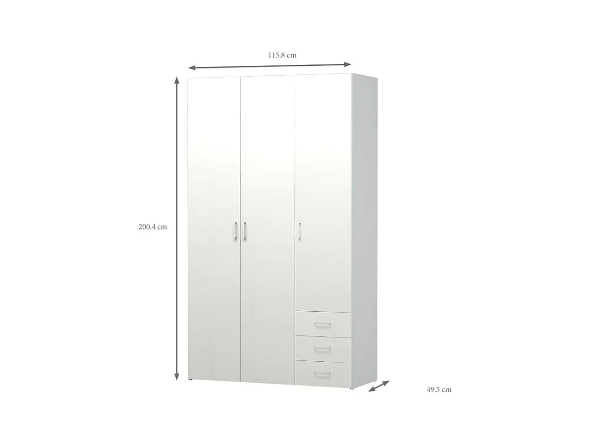 Spell Armoire 3 portes, 3 tiroirs blanc.