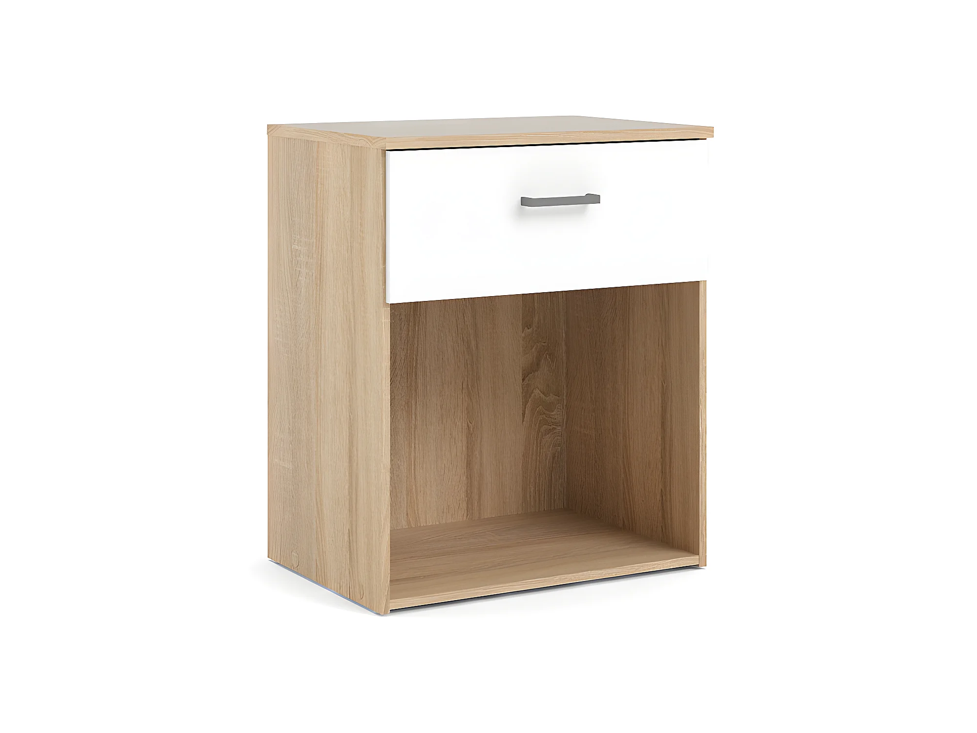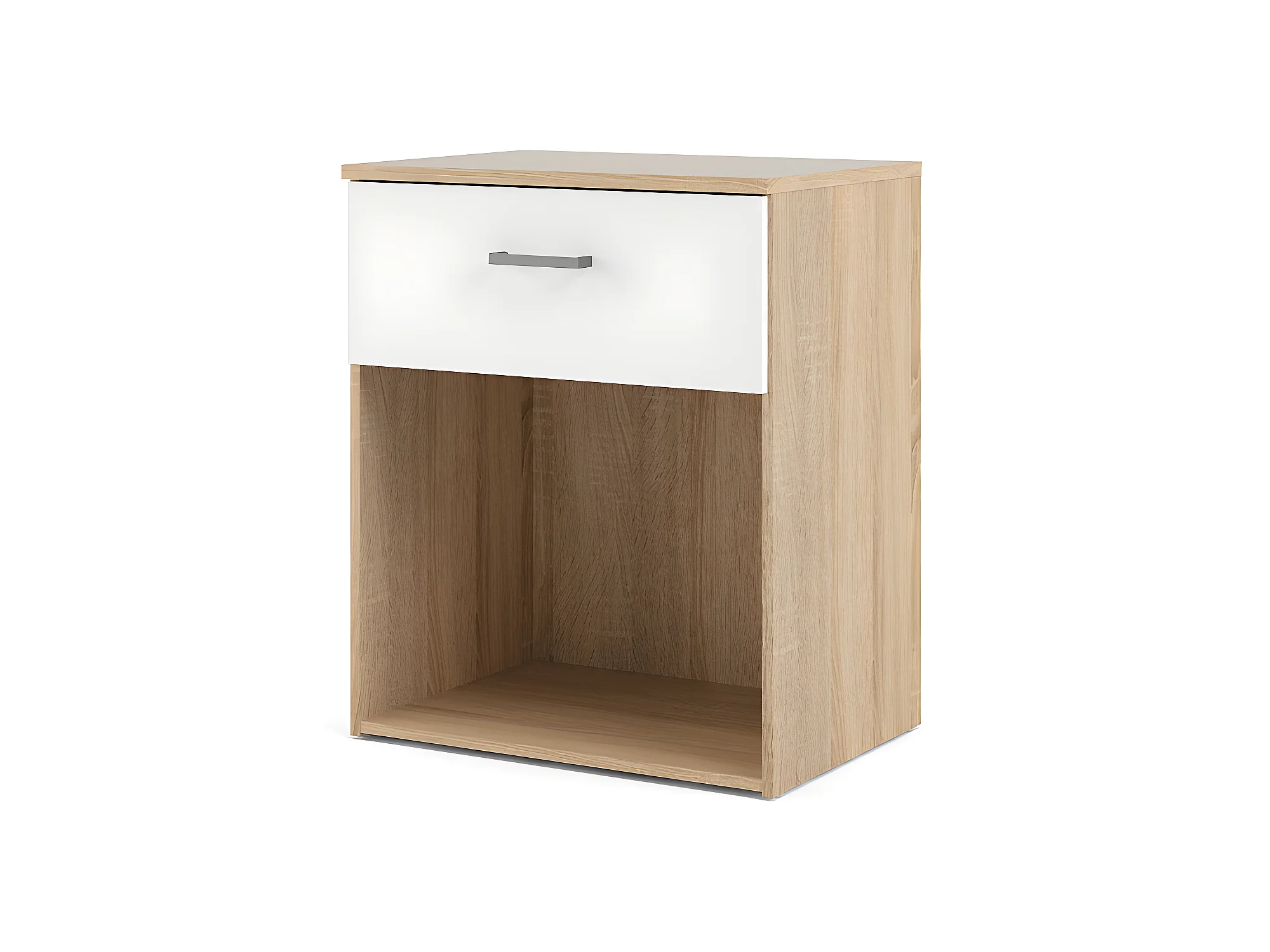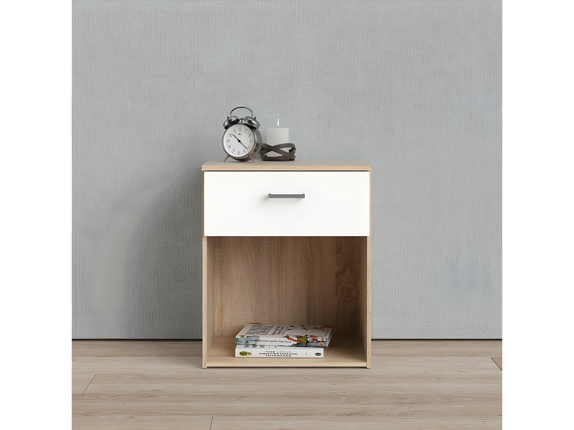 Spell Table de chevet à 1 tiroir, 1 espace de rangement, imitation chêne, blanc.