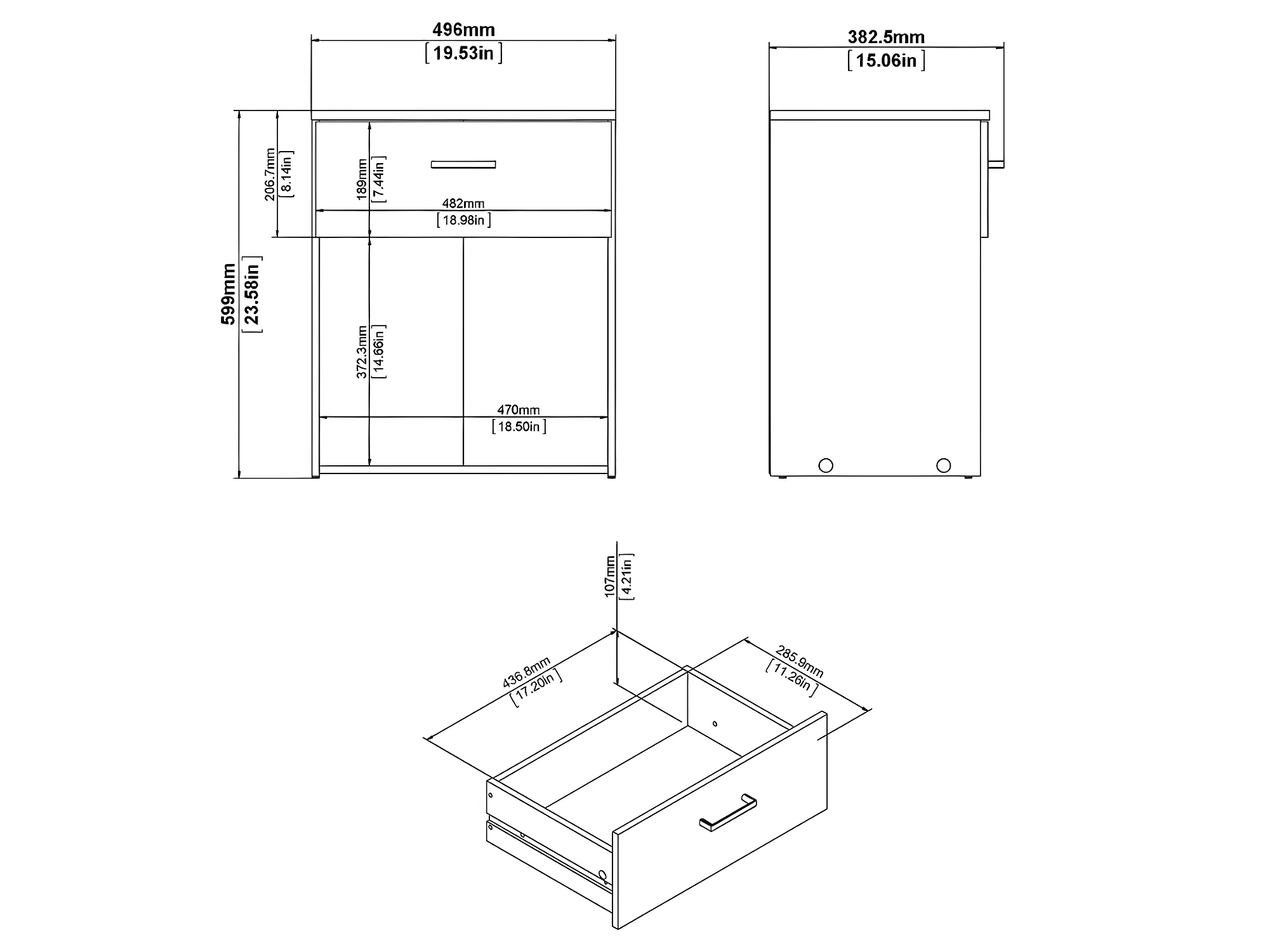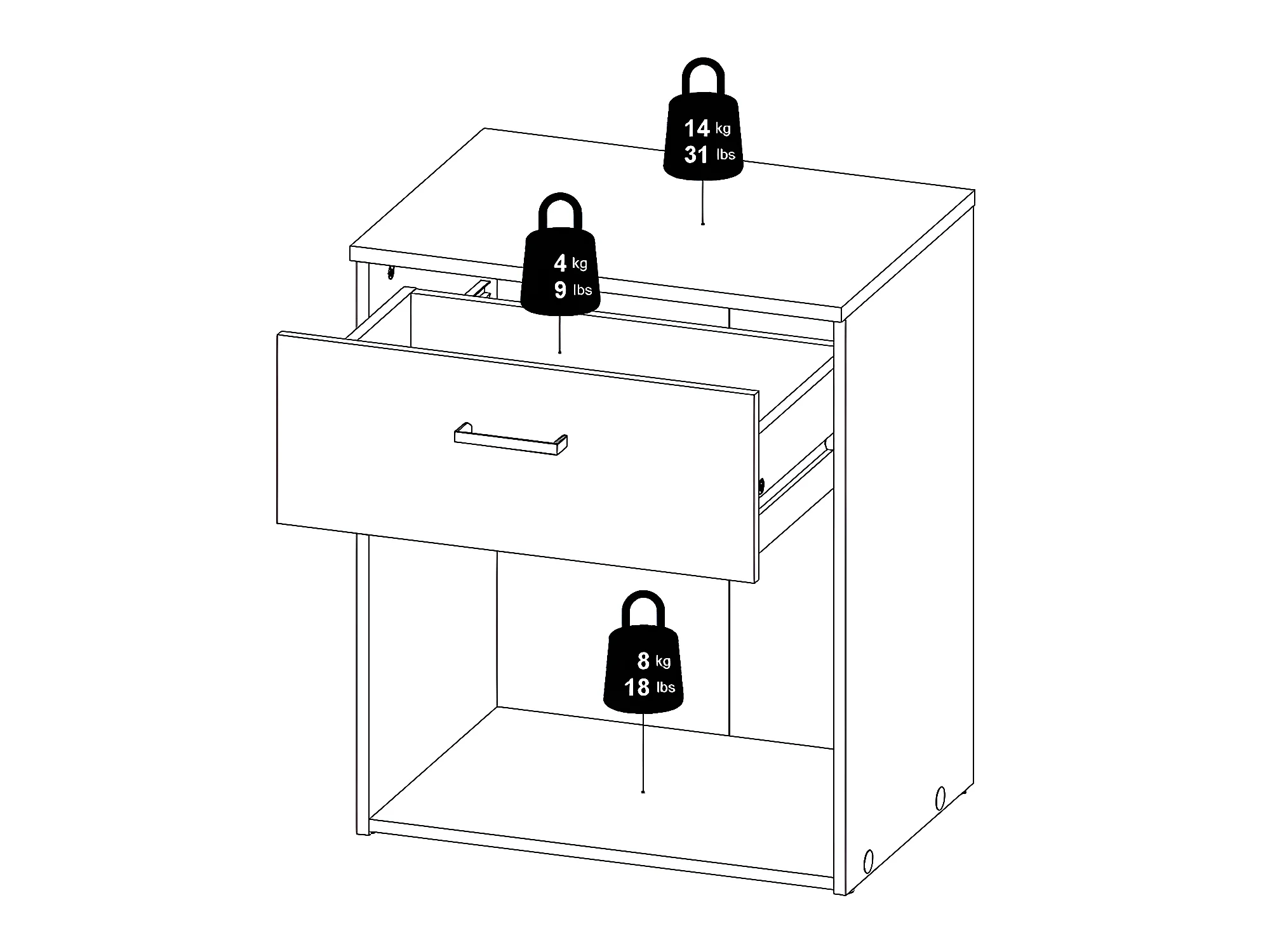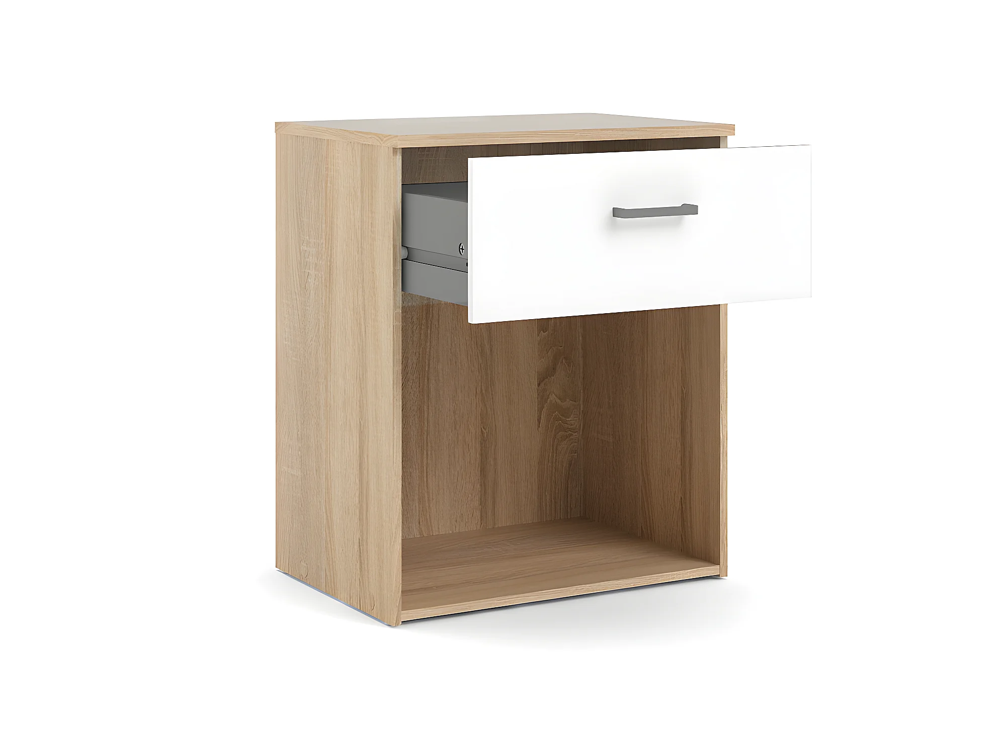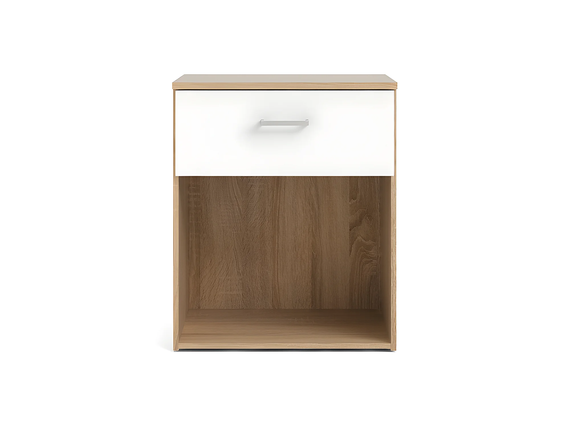 Spell Table de chevet à 1 tiroir, 1 espace de rangement, imitation chêne, blanc.