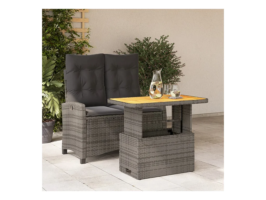 Wise Ensemble à manger de jardin et coussins 2 pcs gris rotin