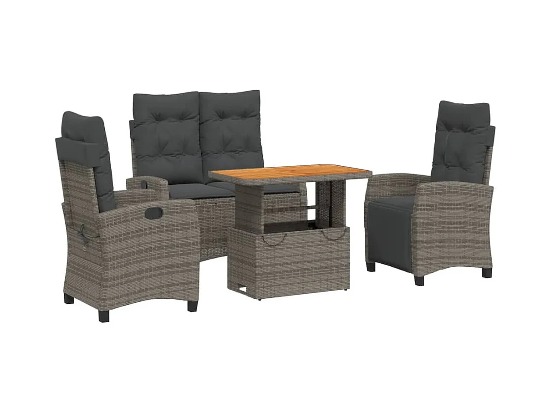 Myrvin Ensemble à manger jardin 4pcs et coussins Gris Résine tressée