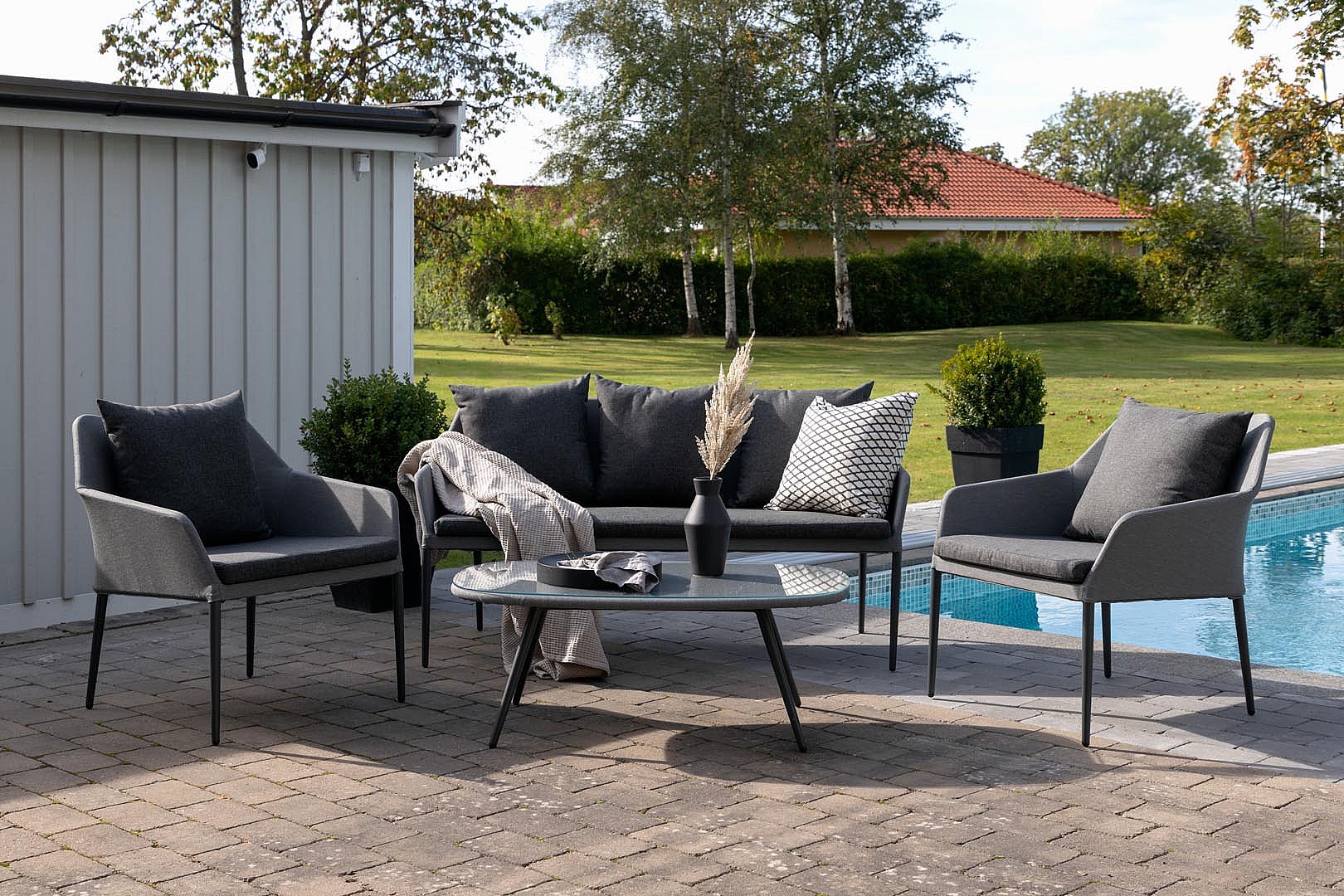 Salon de Jardin "Lindos" 134cm Noir & Gris