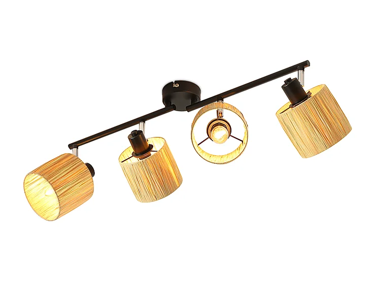 Spot De Plafond 4 Flammes E14 Noir Naturel Plafonnier Papier Salon