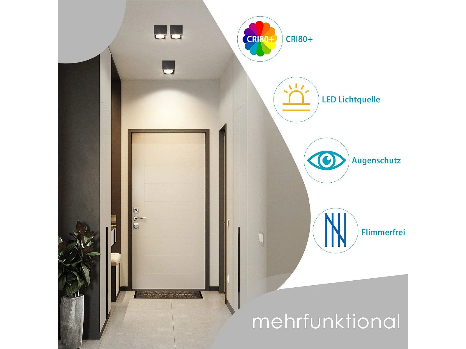 NETTLIFE Plafonnier LED pour couloir, design moderne, intensité variable, télécommande, 44 W, noir