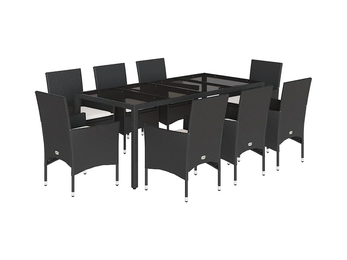 Stafford Springs Ensemble à manger de jardin et coussins 9 pcs noir rotin verre