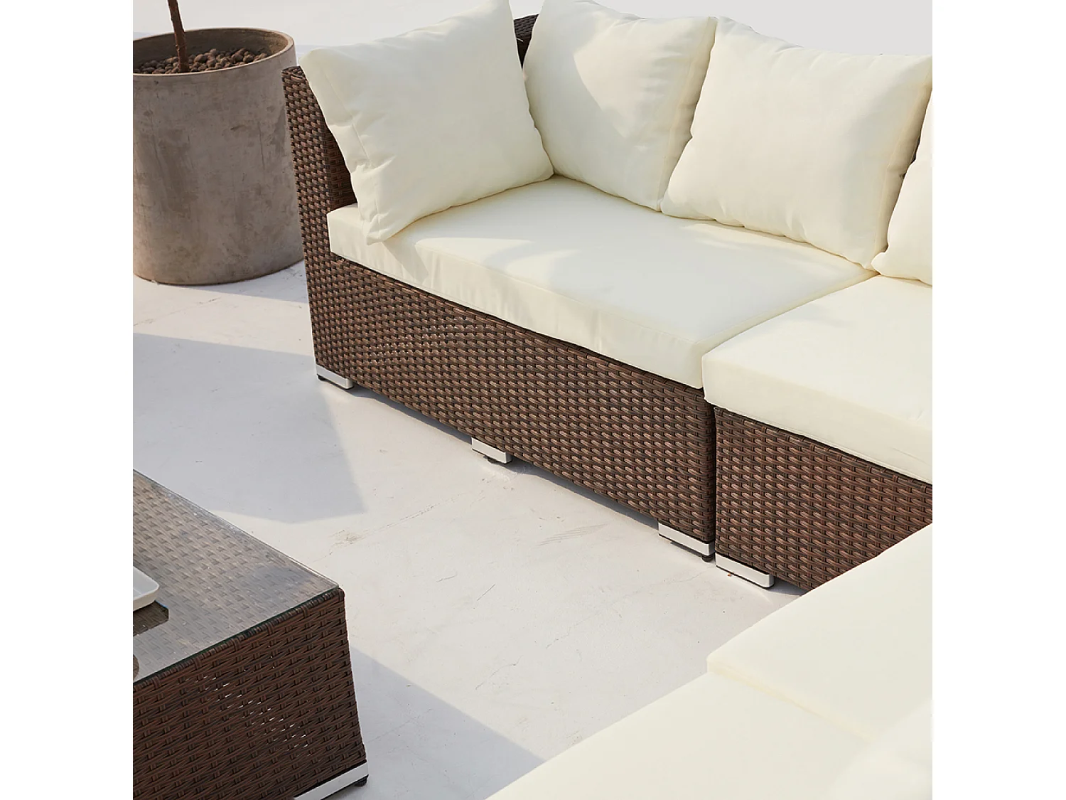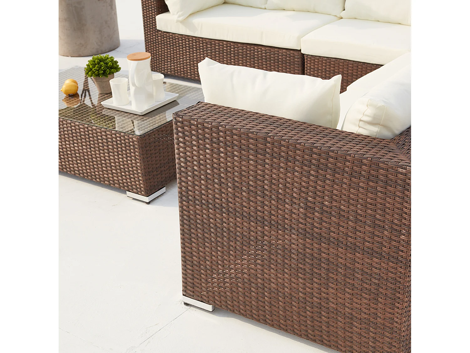 Salon de jardin modulable 13-14 places en résine tressée marron et blanc STALLA