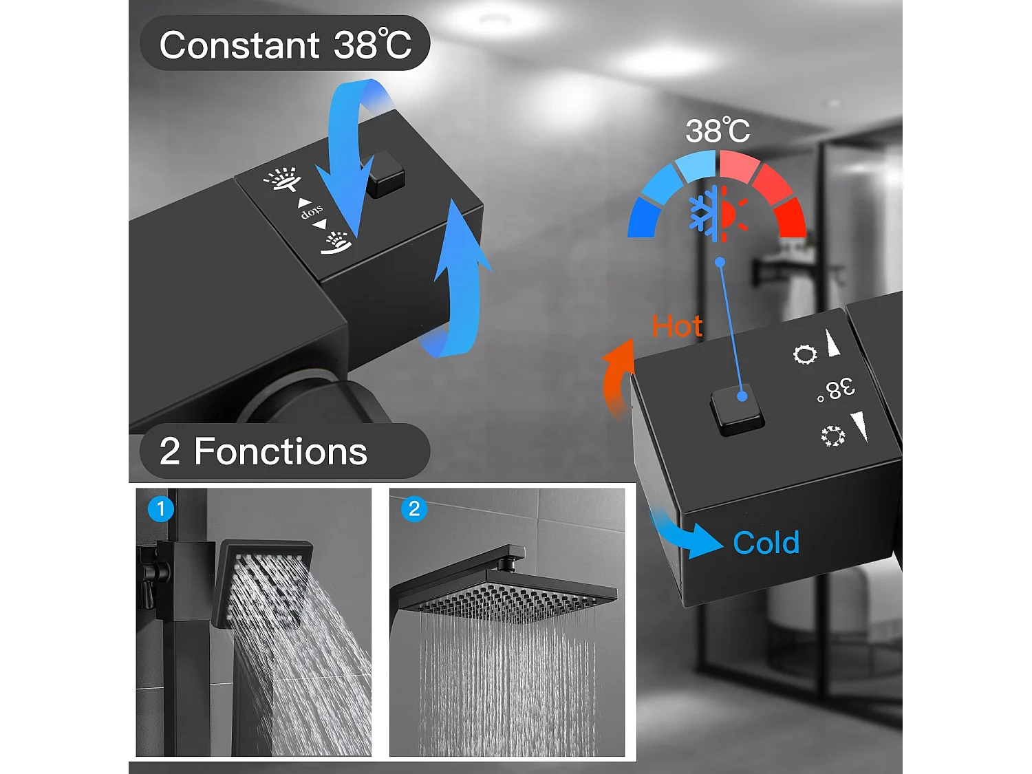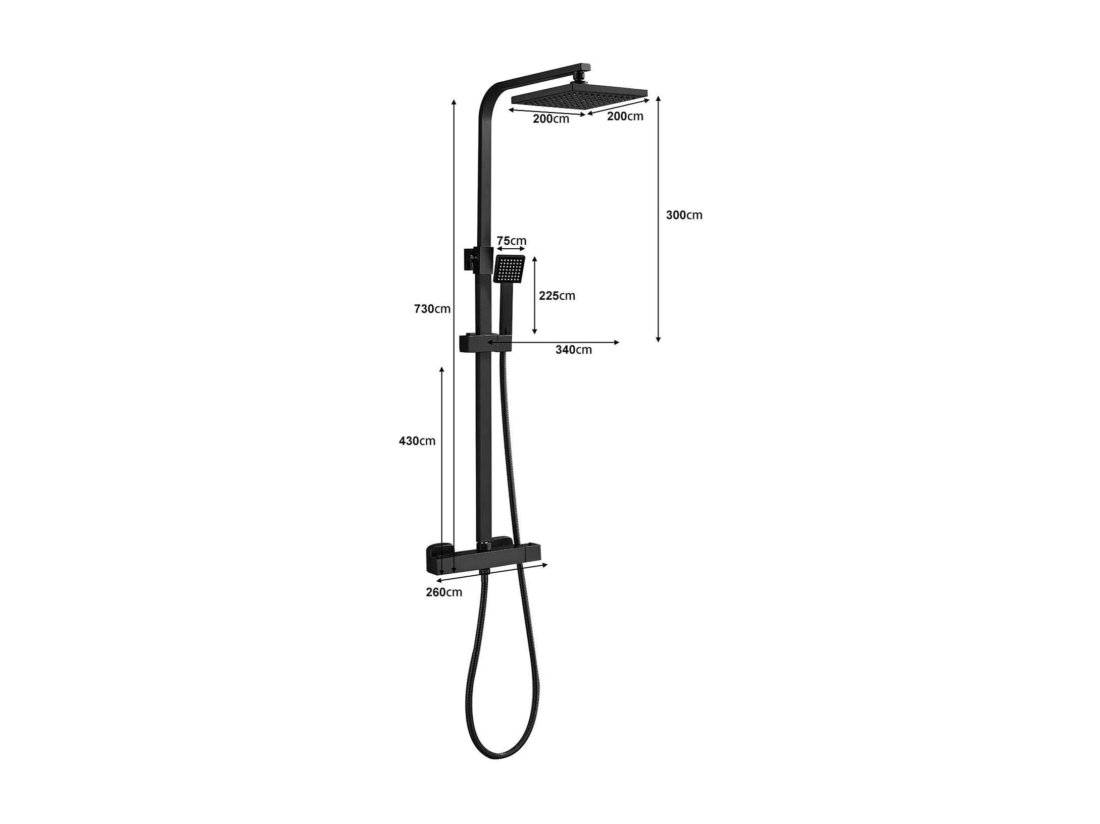 Colonne de Douche Thermostatique, Réglable en Hauteur, Noir