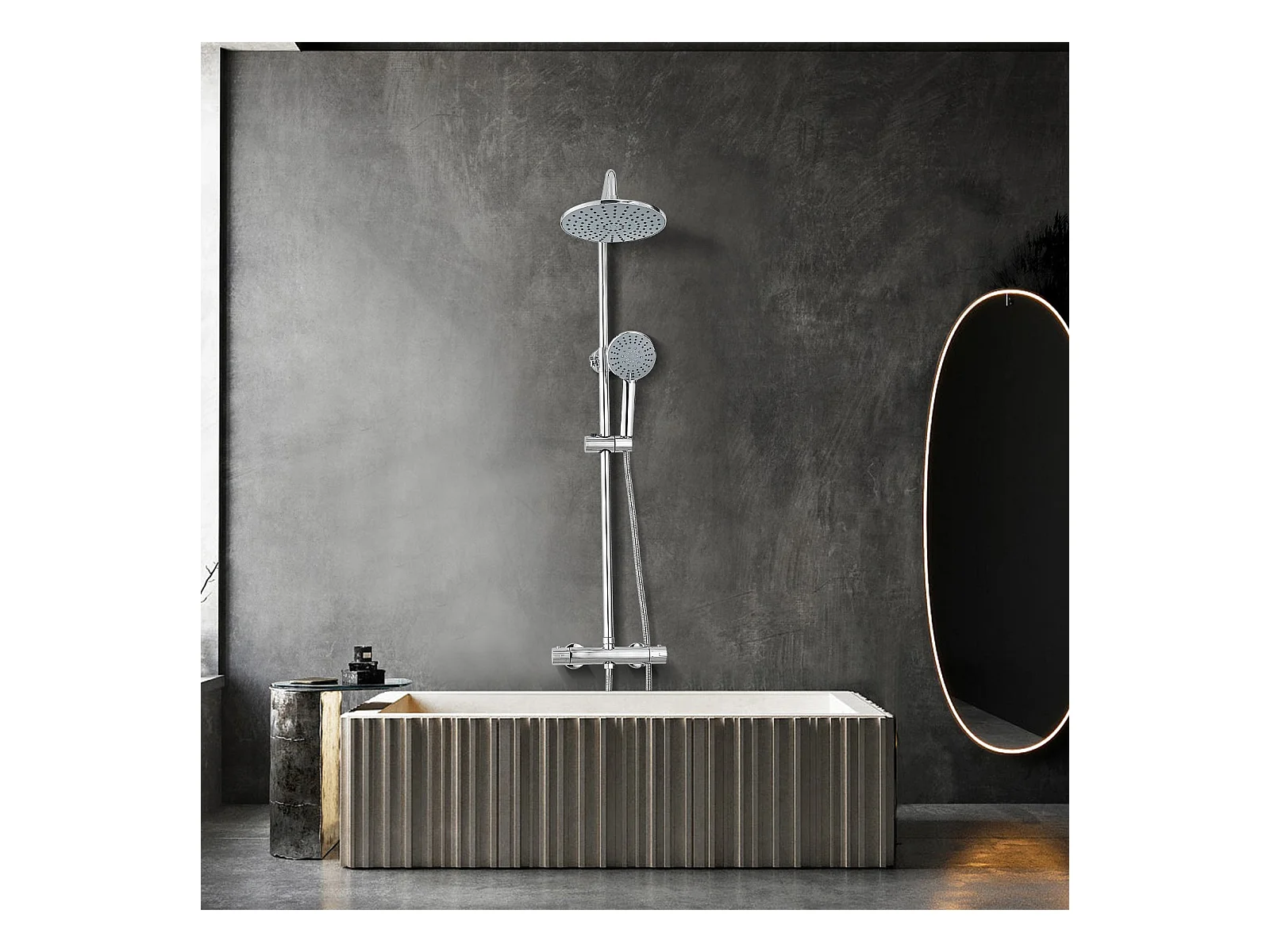 Colonne de Douche Thermostatique, avec Mitigeur Réglable Hauteur, Argentée