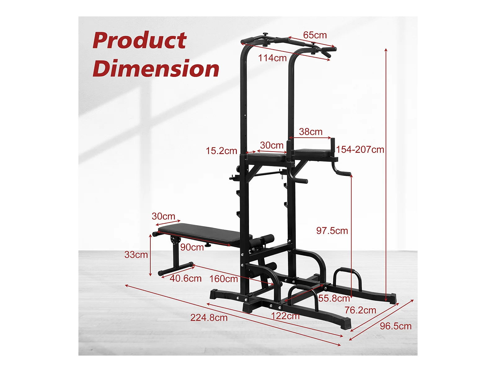 Station d'entraînement multifonction pour tractions et dips, en fer, noir, réglable en hauteur (224.8x96.5x207cm)