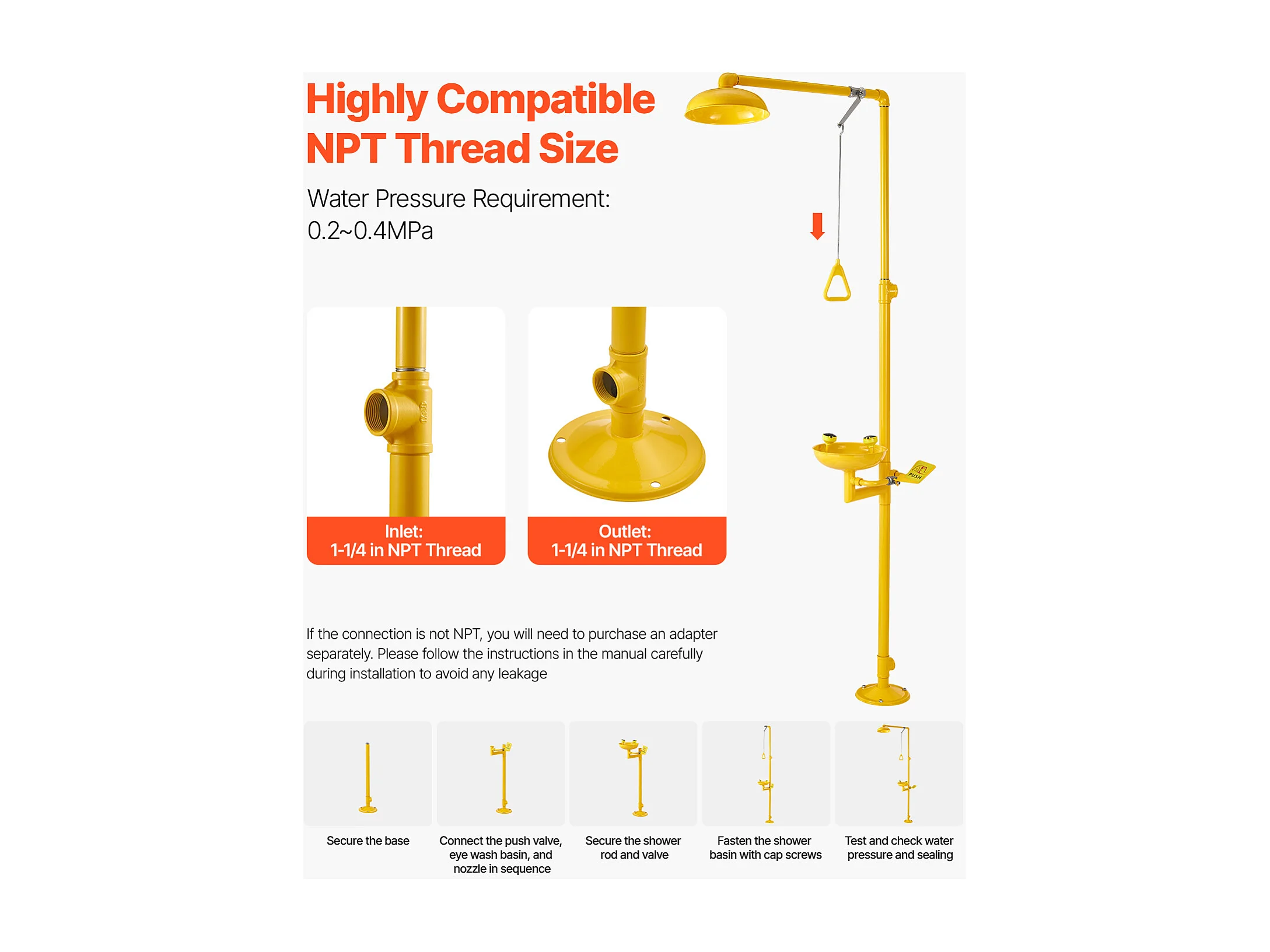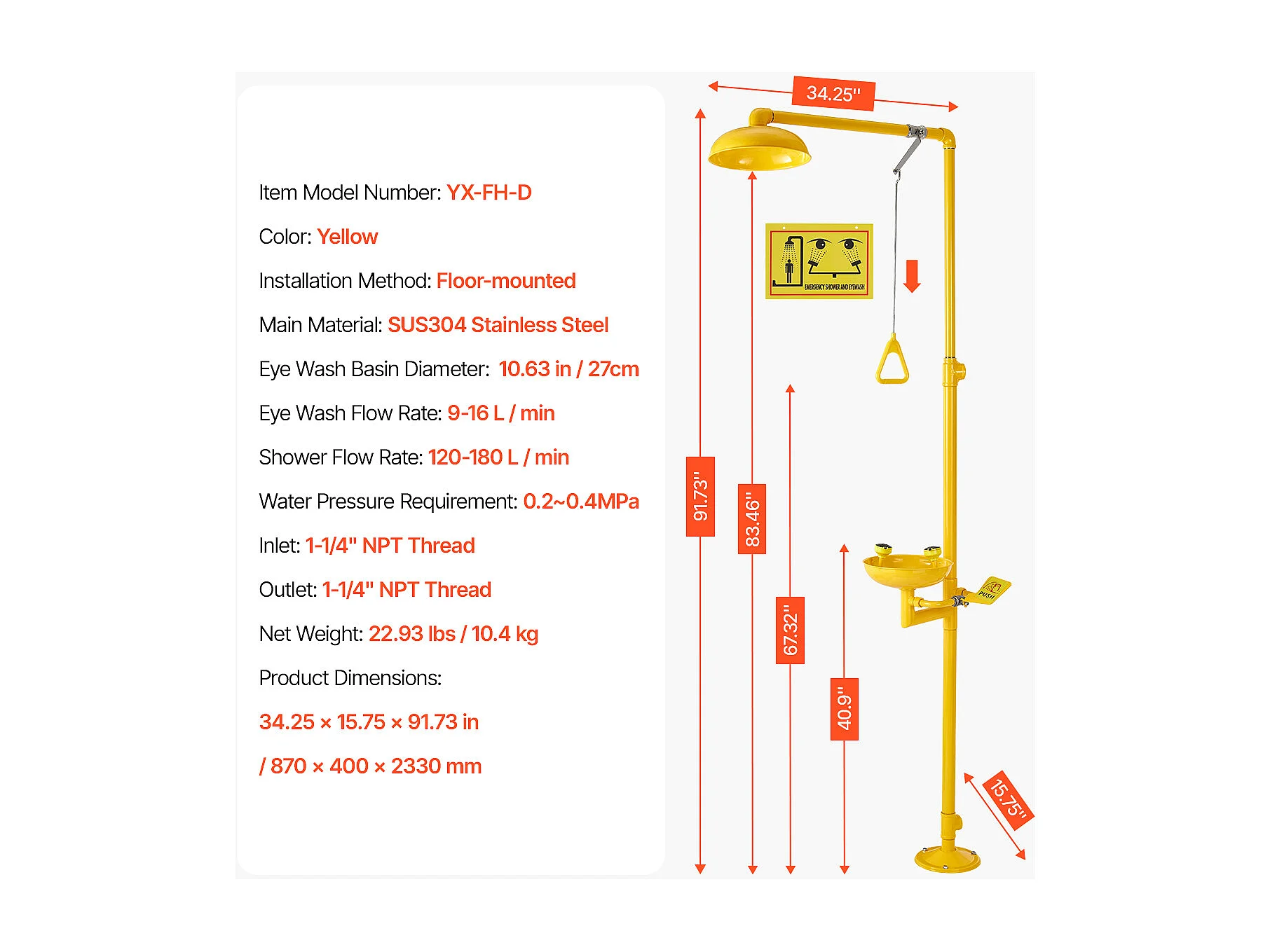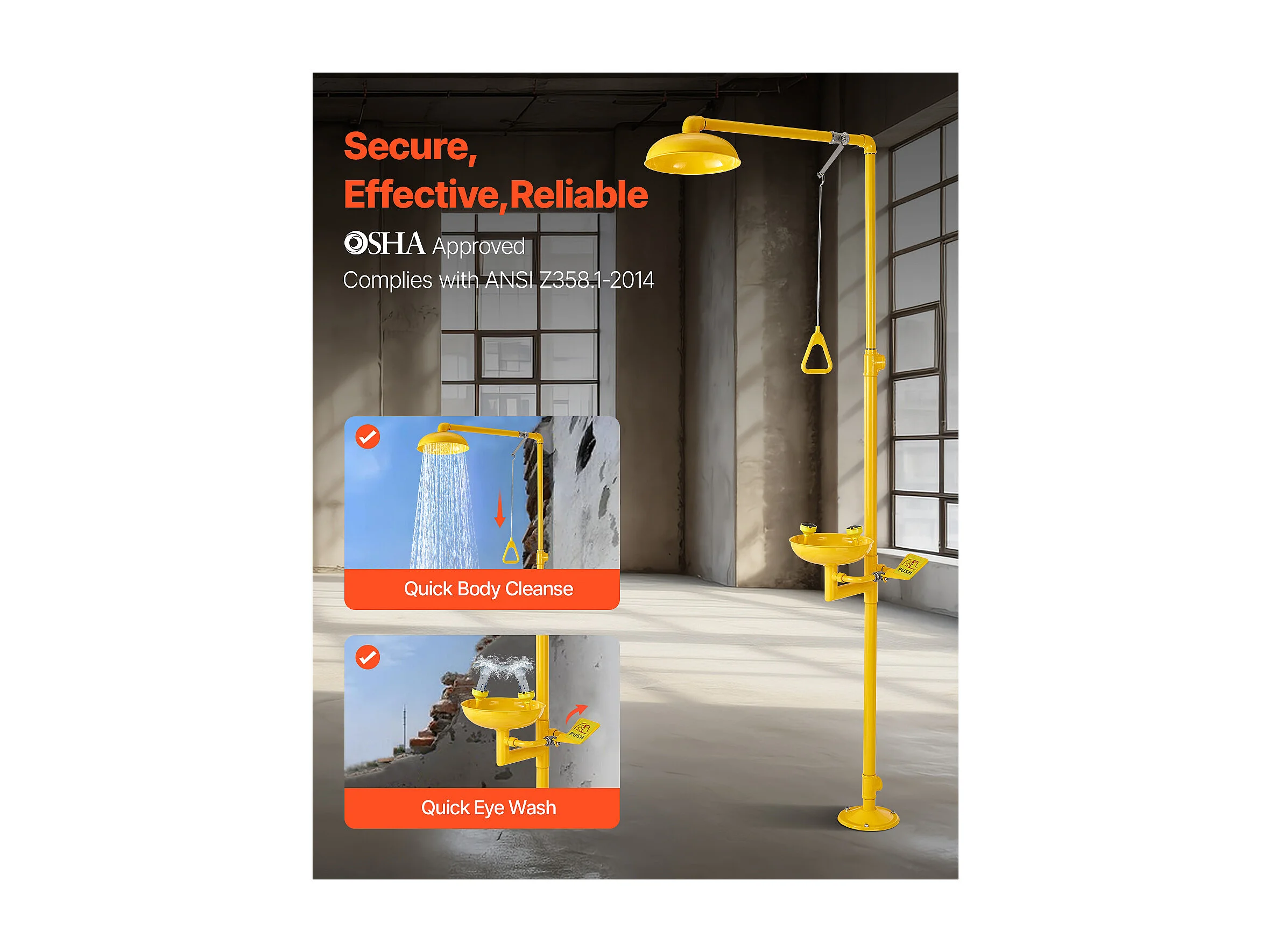 Station de Lavage SucceBuy Oculaire avec Douche, 87 x 40 x 233 cm, Dispositif de Premiers Secours en Acier Inoxydable 304, Adapté aux Écoles, Jaune