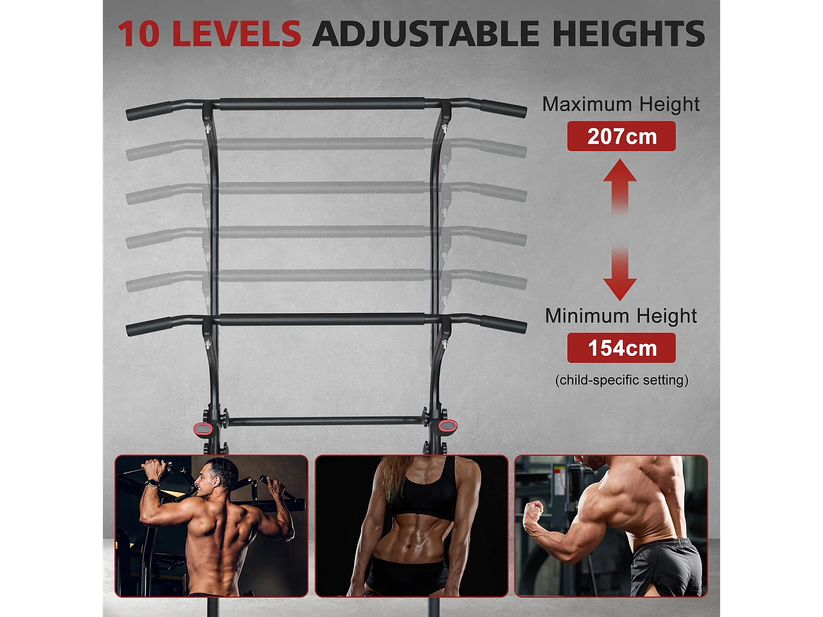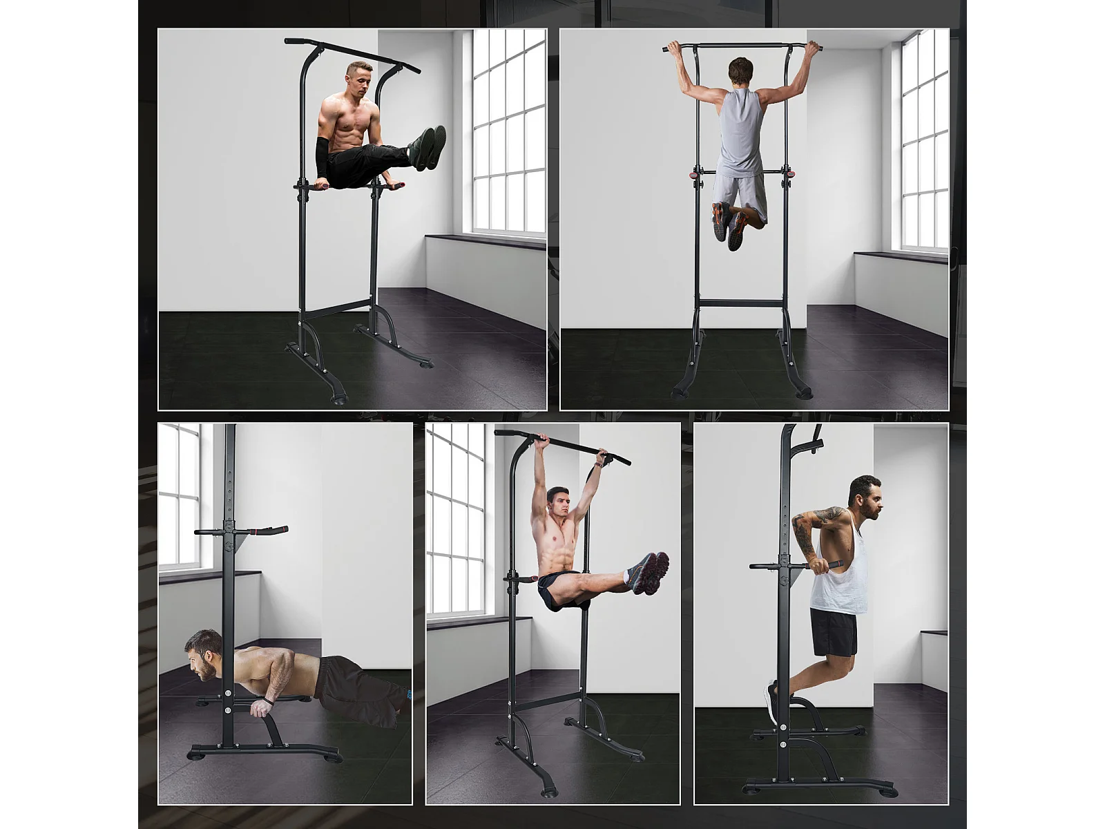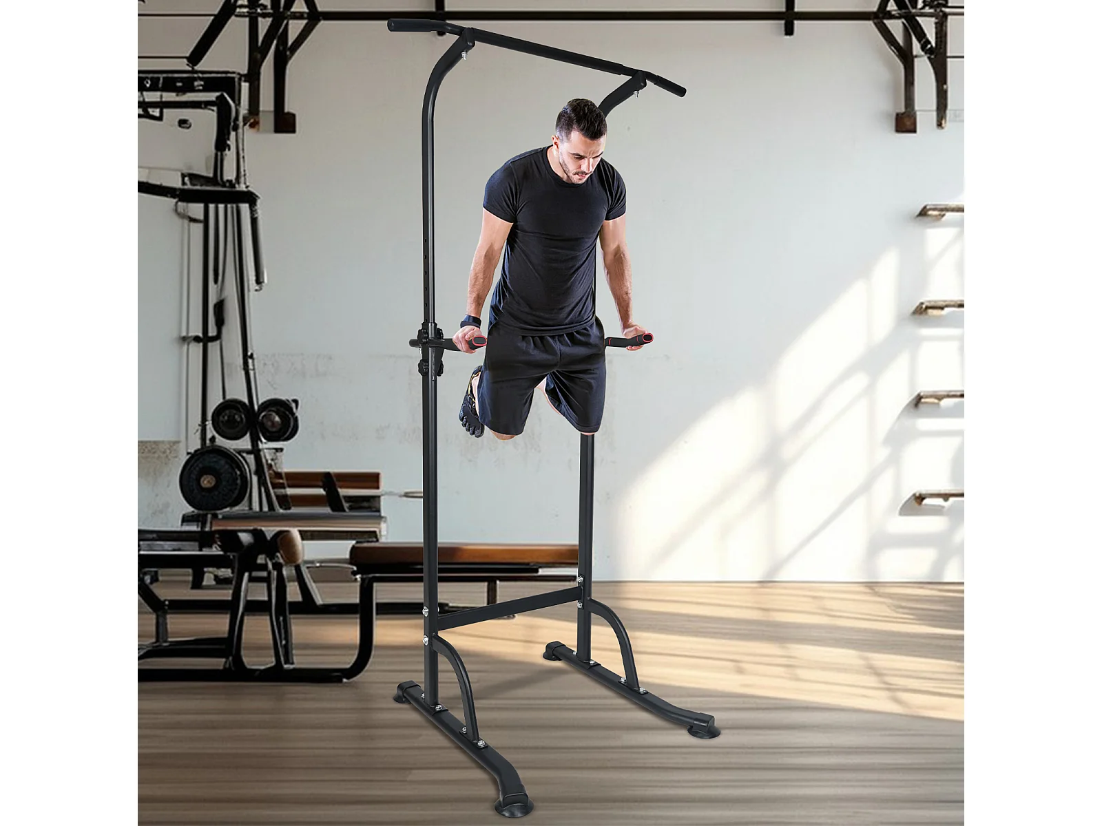 Station d'entraînement multifonction pour tractions et dips, en fer, noir, réglable en hauteur (224.8x96.5x207cm)