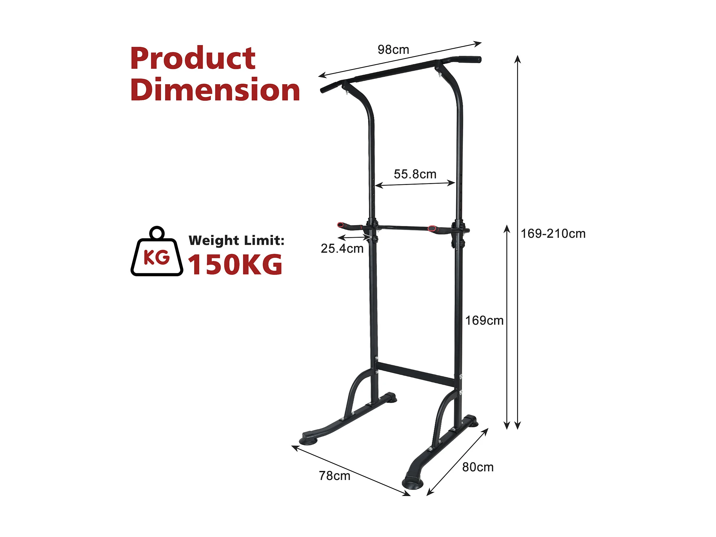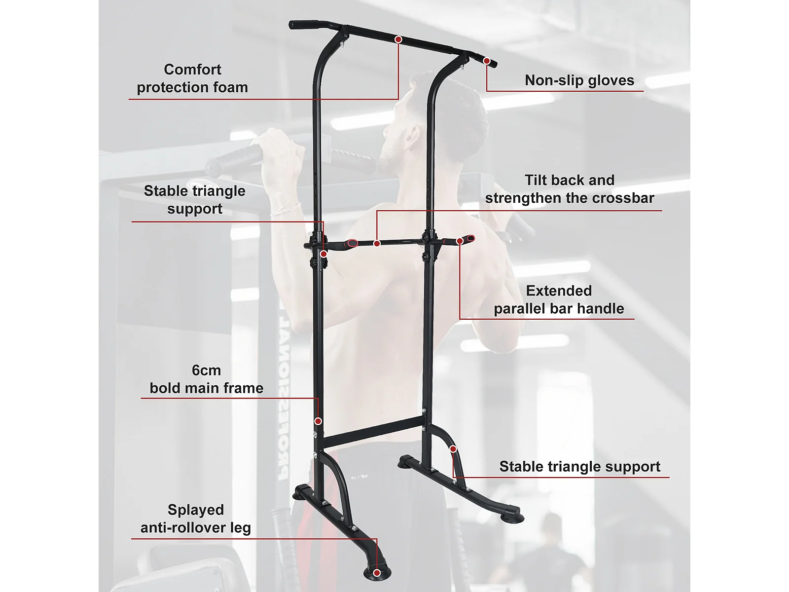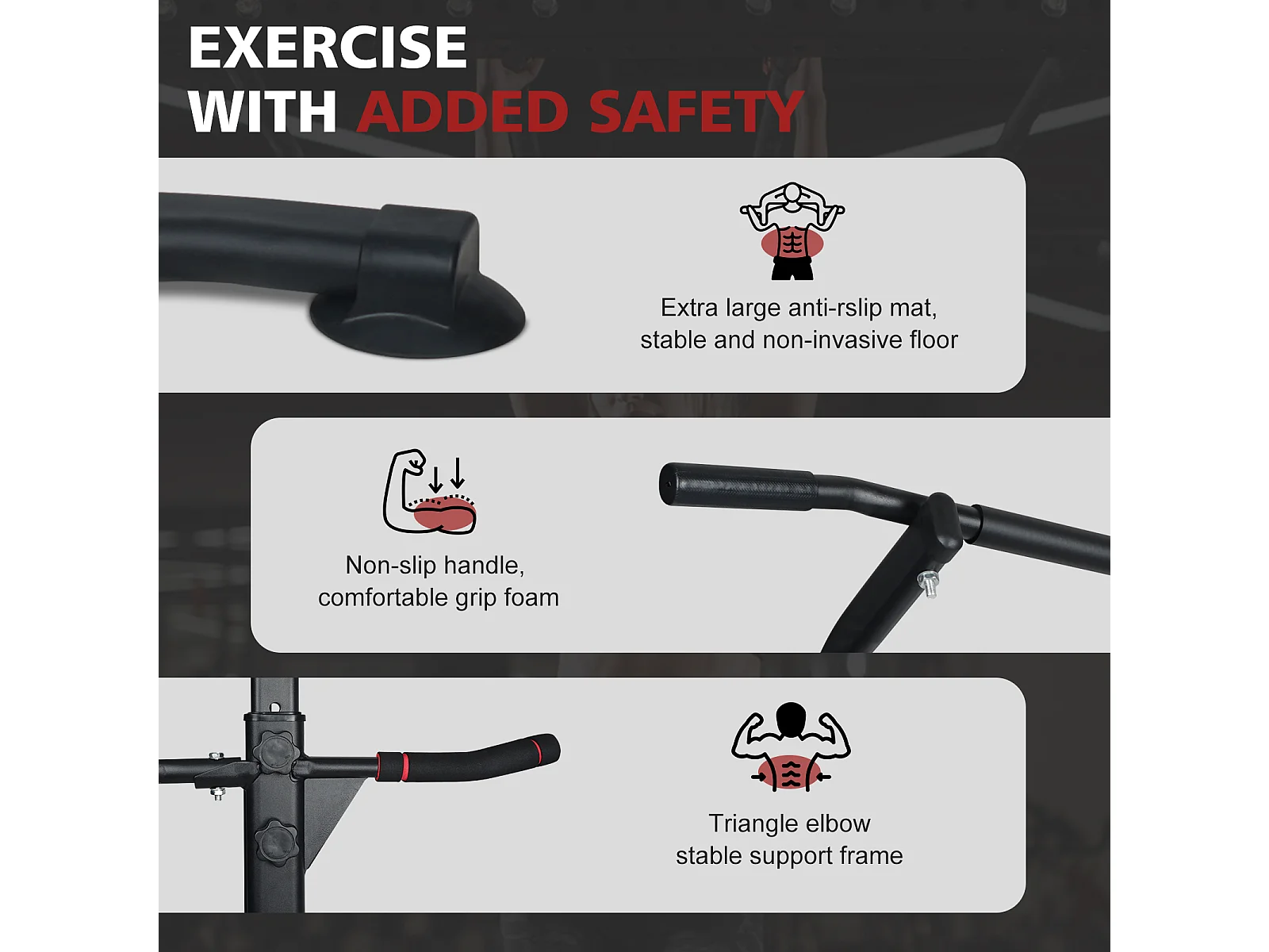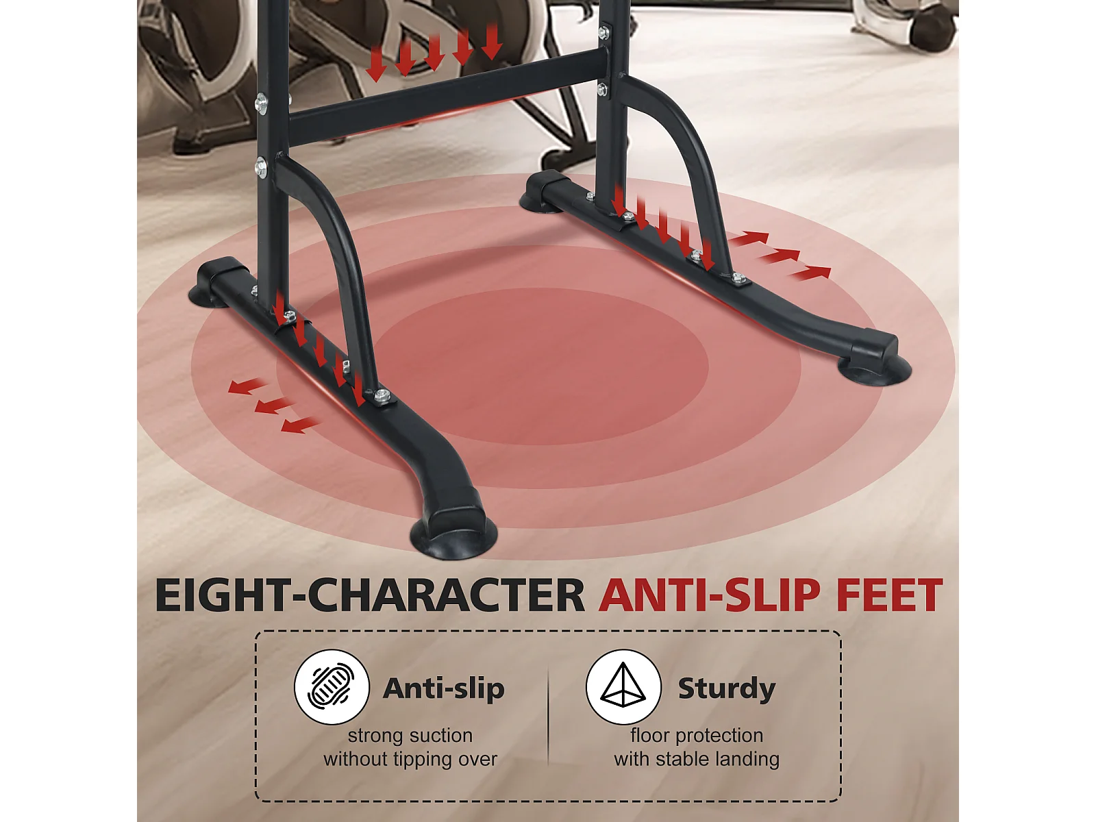 Station d'entraînement multifonction pour tractions et dips, en fer, noir, réglable en hauteur (224.8x96.5x207cm)