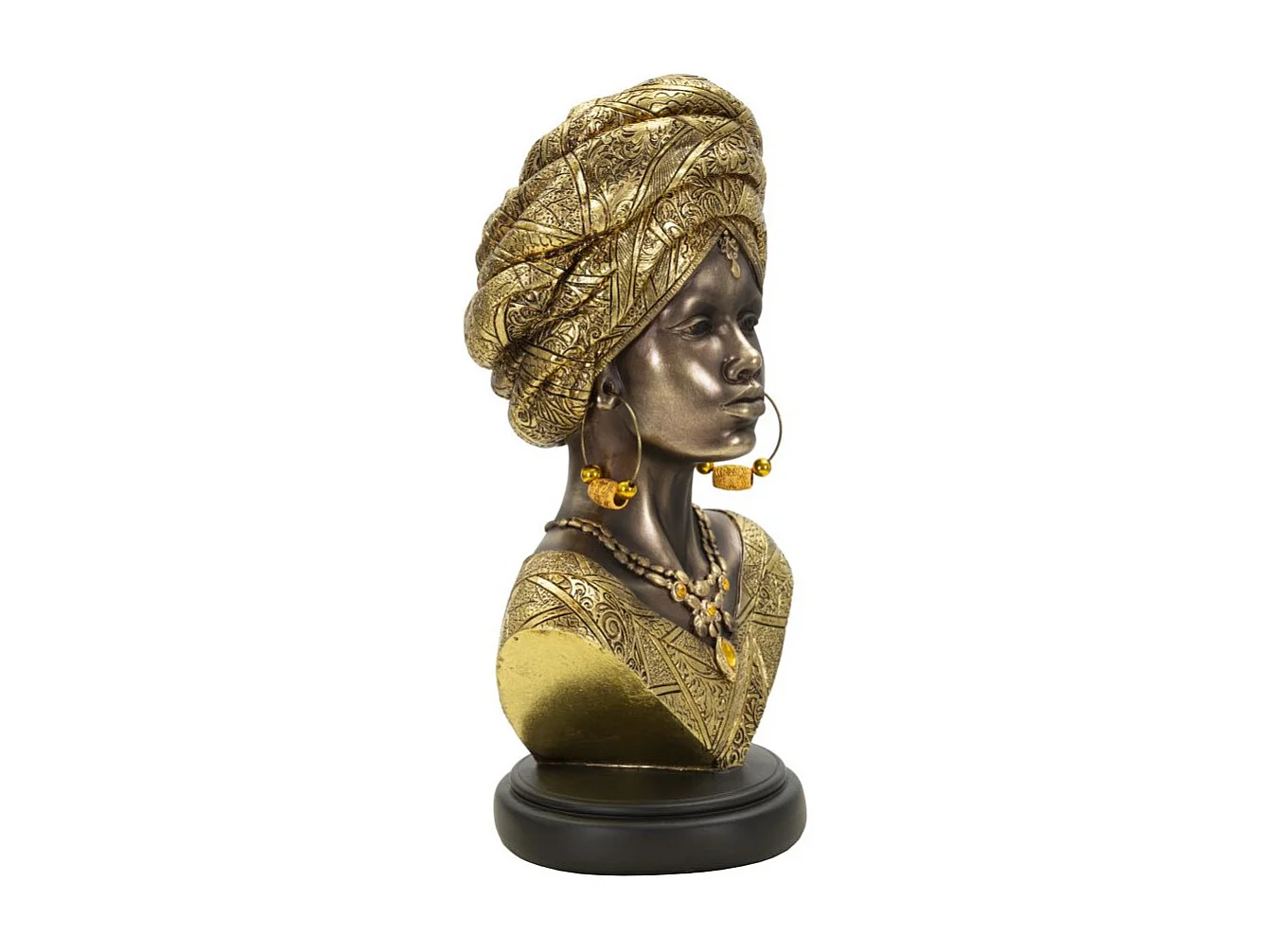 Buste Femme Africaine en Résine "Nairobi" 28cm Or