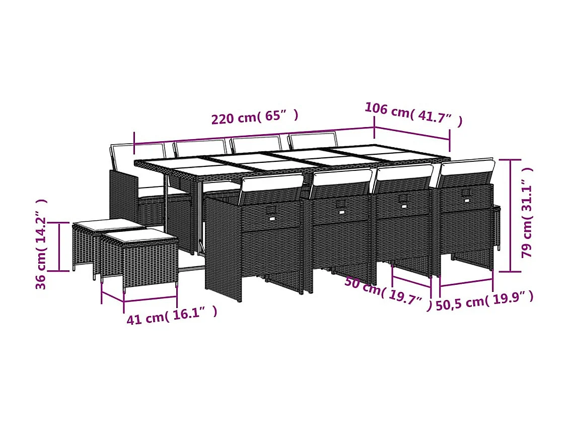 Zenn Ensemble à manger de jardin coussins 13 pcs gris résine tressée