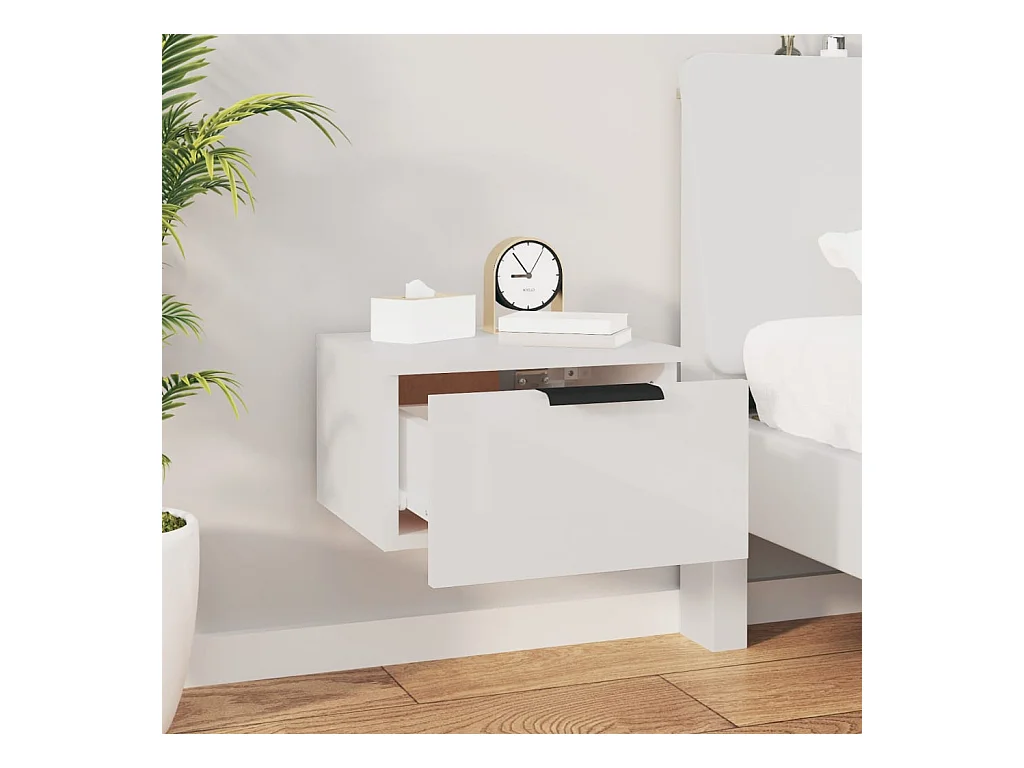Steve James Table de chevet murale blanc brillant 34x30x20 cm