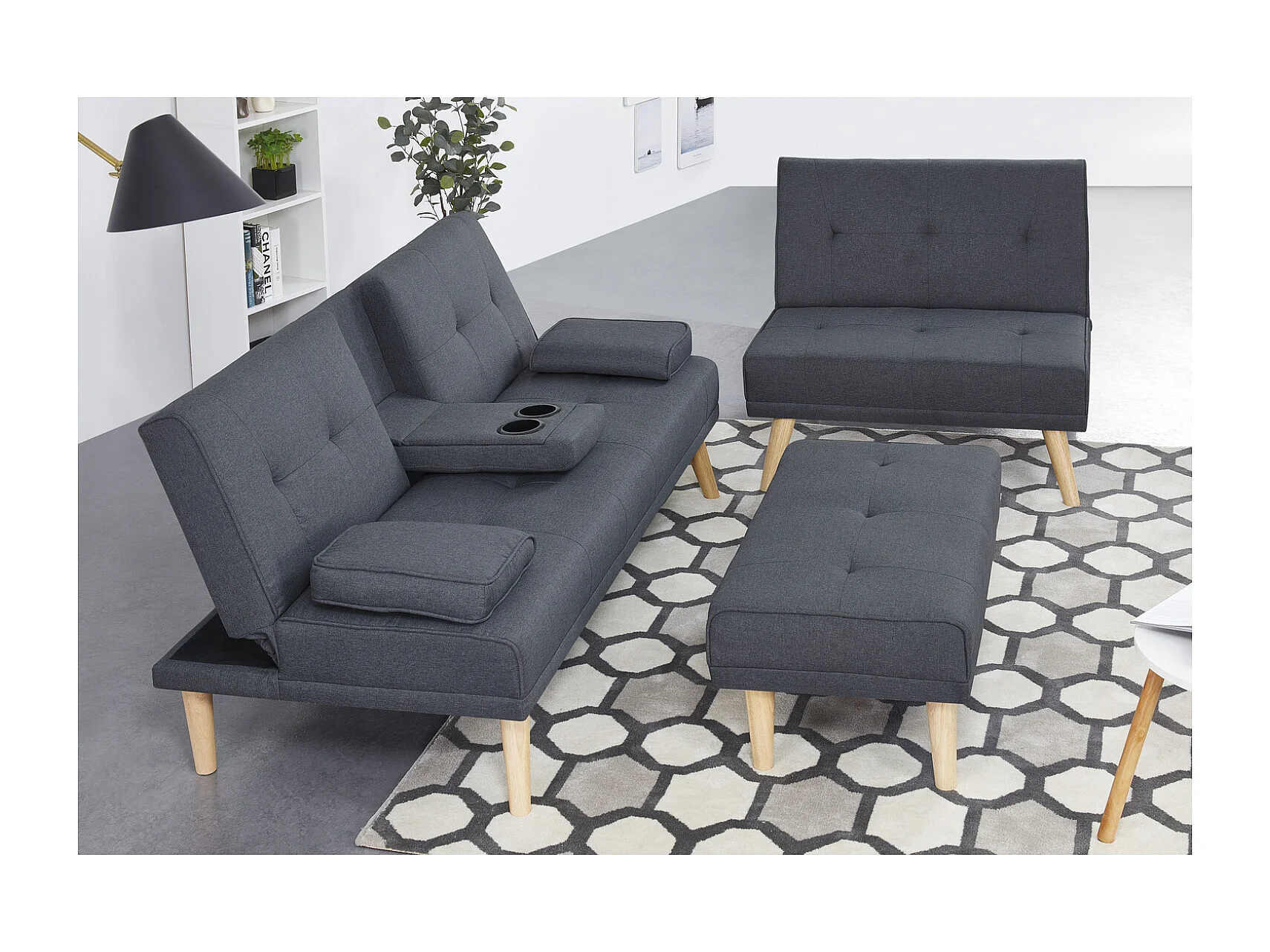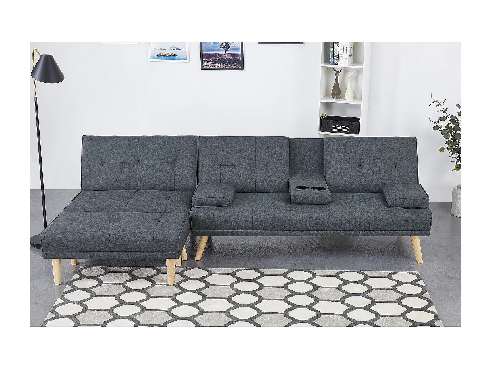 Canapé scandinave convertible 5 places en tissu gris STOCKHOLM