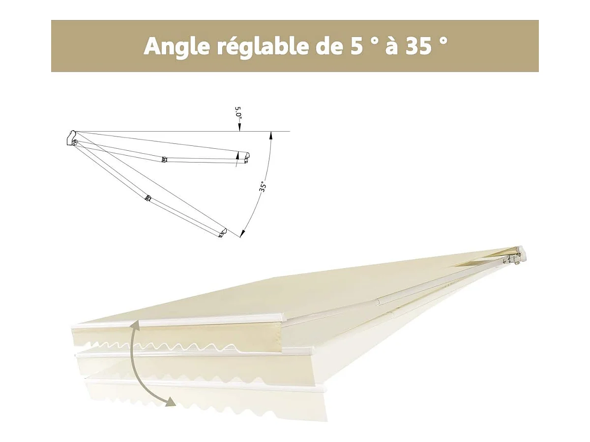 Store Banne de Balcon Rétractable 3,6 X 3M avec Tissu et velours Résistant aux UV et à l'Eau, Cadre en Aluminium Angle Réglable 5-35°