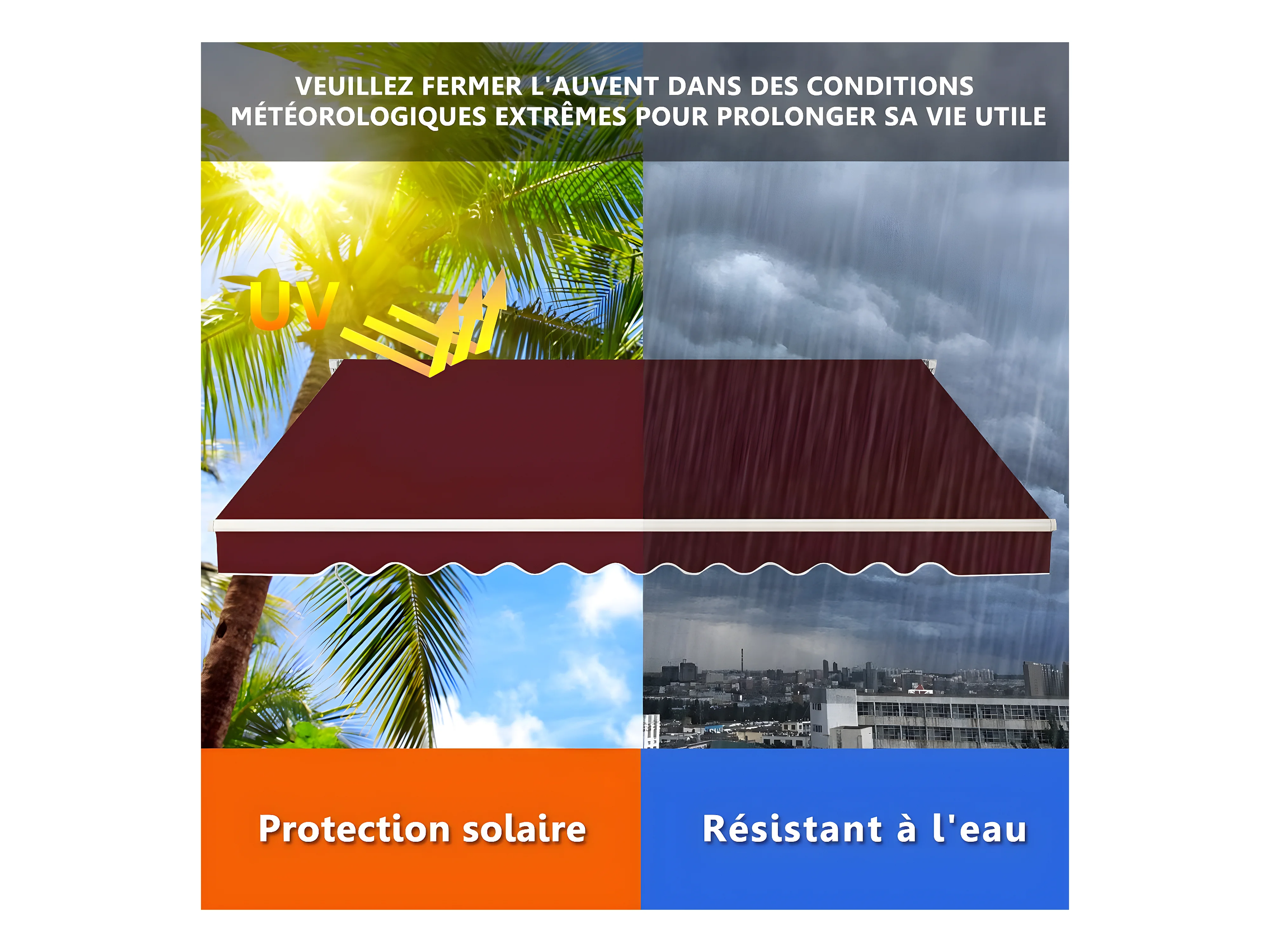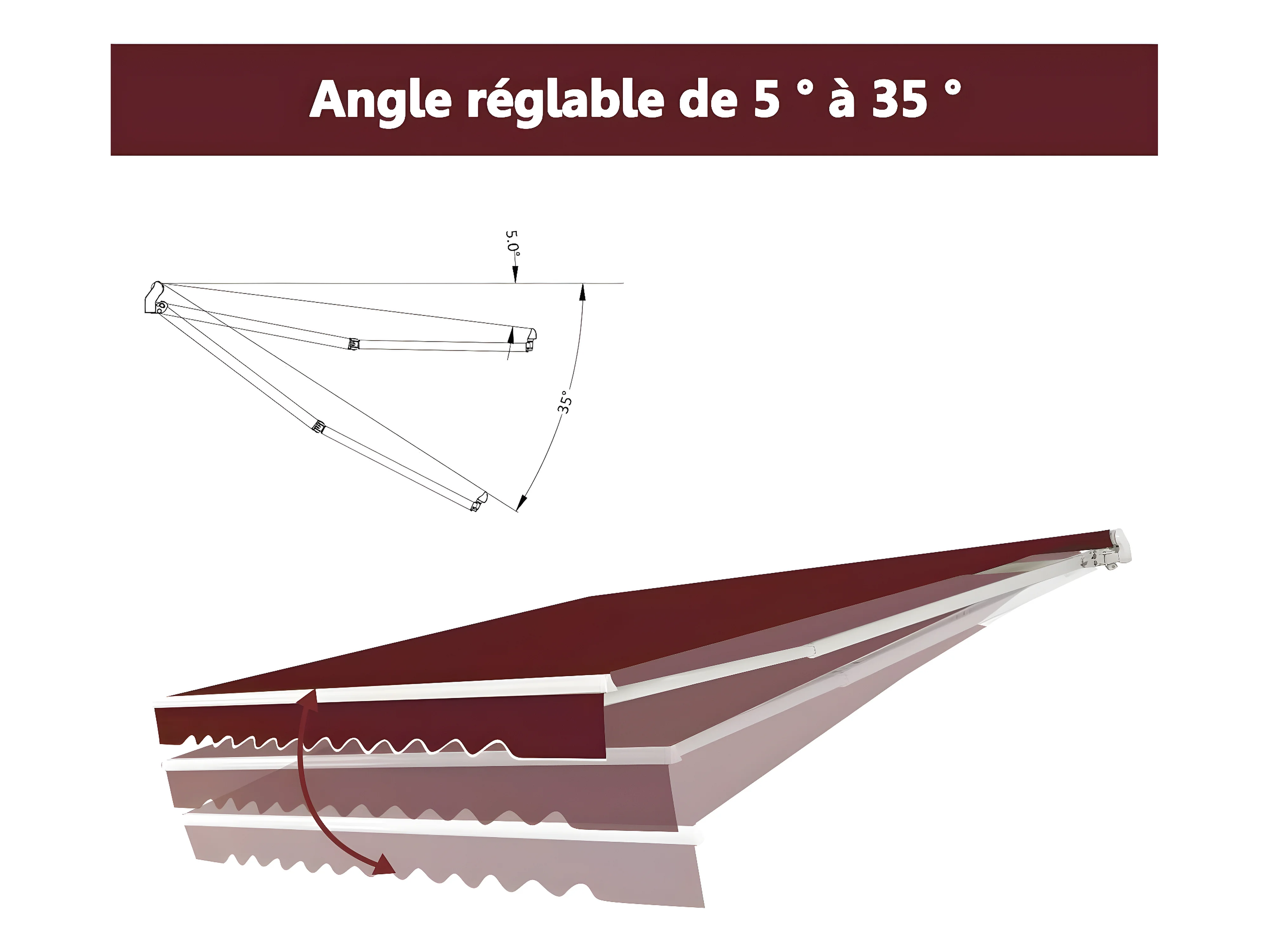 Store Banne de Balcon Rétractable avec Tissu et velours Résistant aux UV et à l'eau, Cadre en Aluminium Angle Réglable 5-35° ,3,6 x 3 m