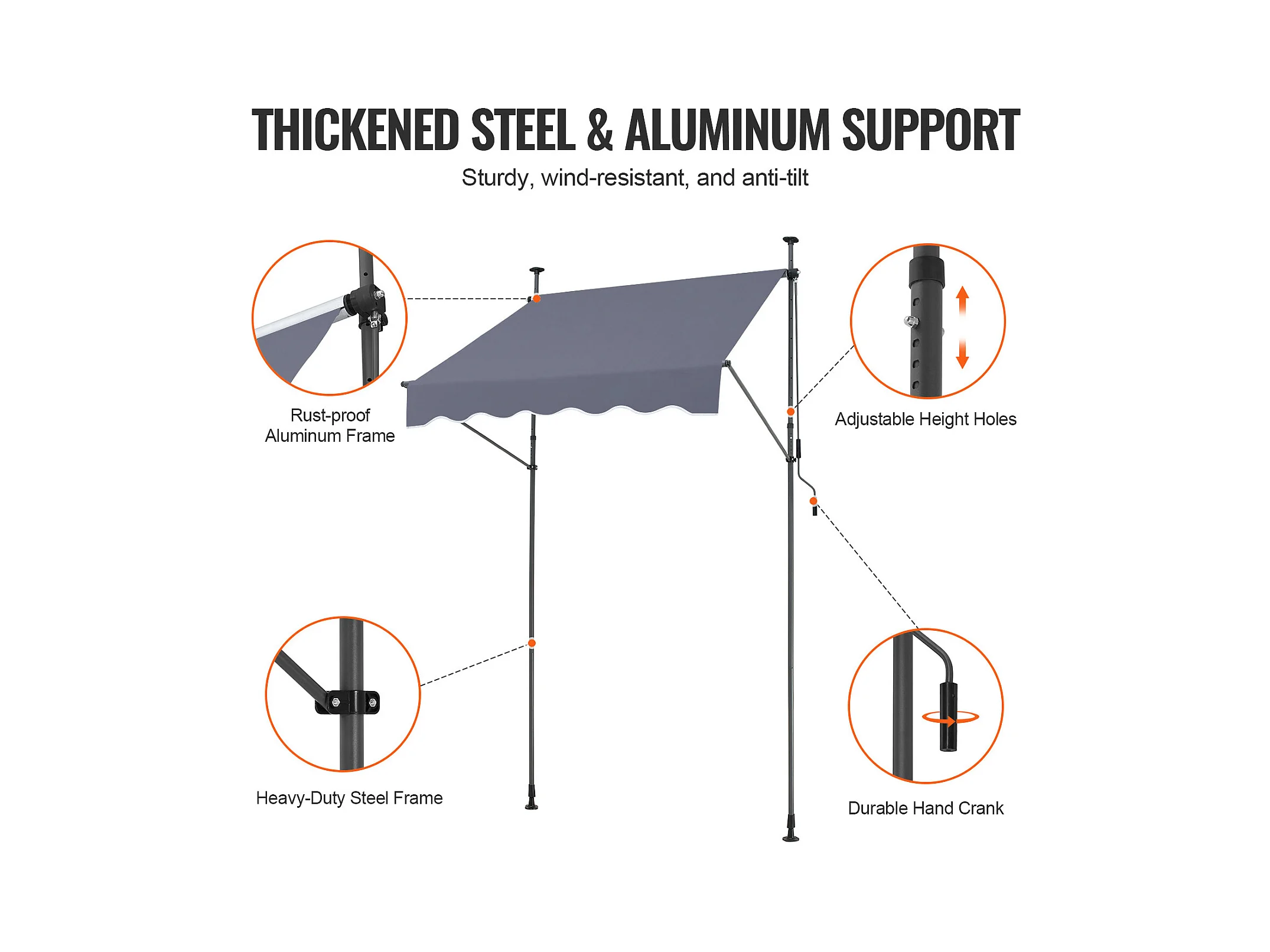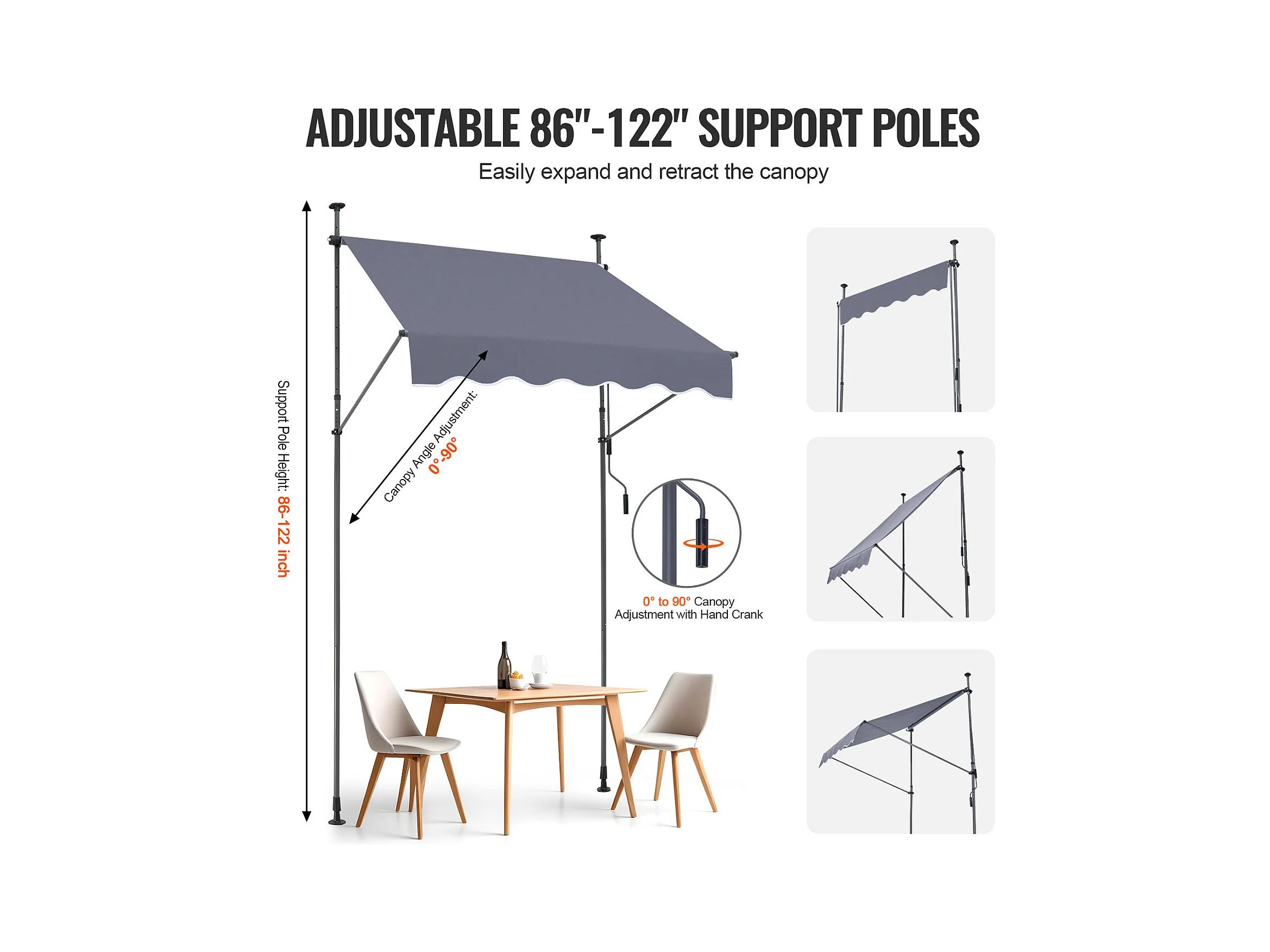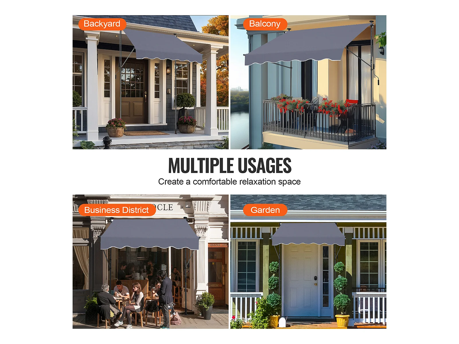 Store Banne Manuel Rétractable SucceBuy Auvent de Terrasse 149.86 x 119.38cm avec Manivelle Gris Foncé Auvent Pare-soleil Abri Rétractable