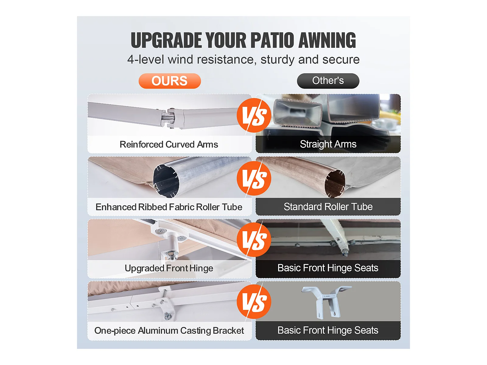 Store Banne Manuel Rétractable SucceBuy Auvent de Terrasse Rétractable 243.84 x 213.36cm Auvent Pare-soleil Abri avec Manivelle