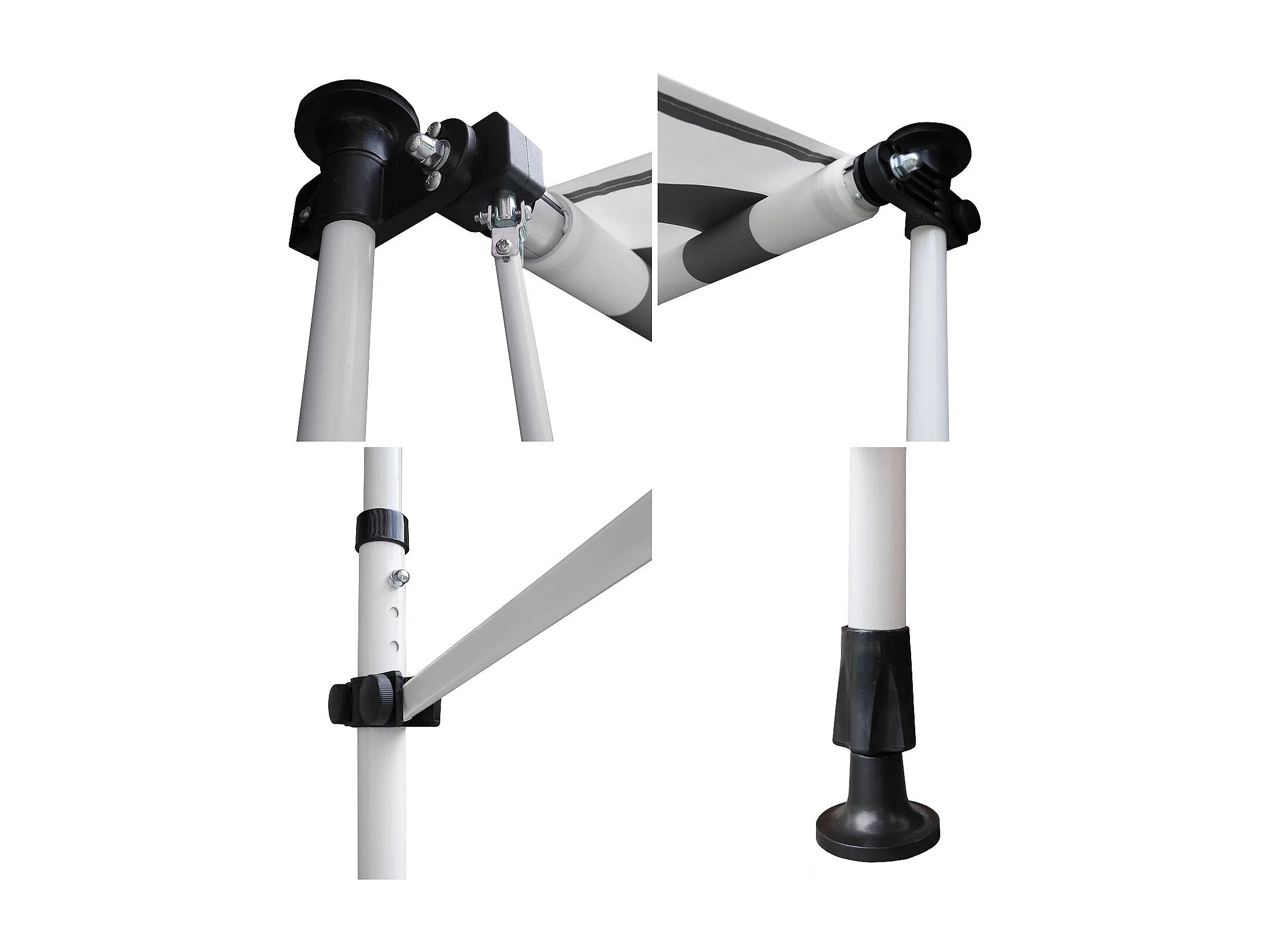 Store banne pour balcon CHENE 3 × 1,2m - Toile rayée blanche/grise et structure blanche - HAPPY GARDEN
