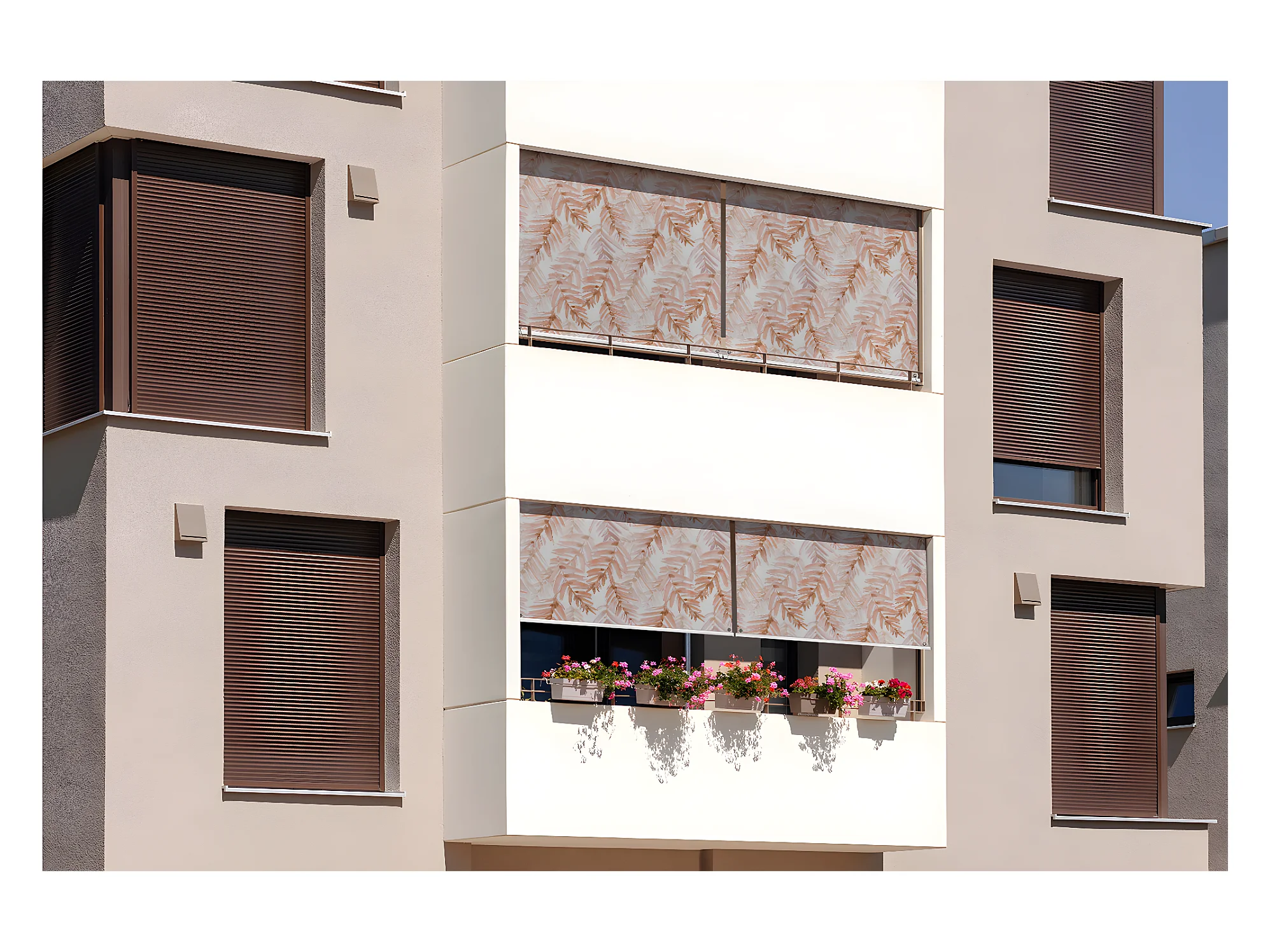 Store enrouleur extérieur original - 120x290 cm - Feuilles pastel Rideau de balcon, Stores enrouleurs de balcon, Rideau pare-soleil