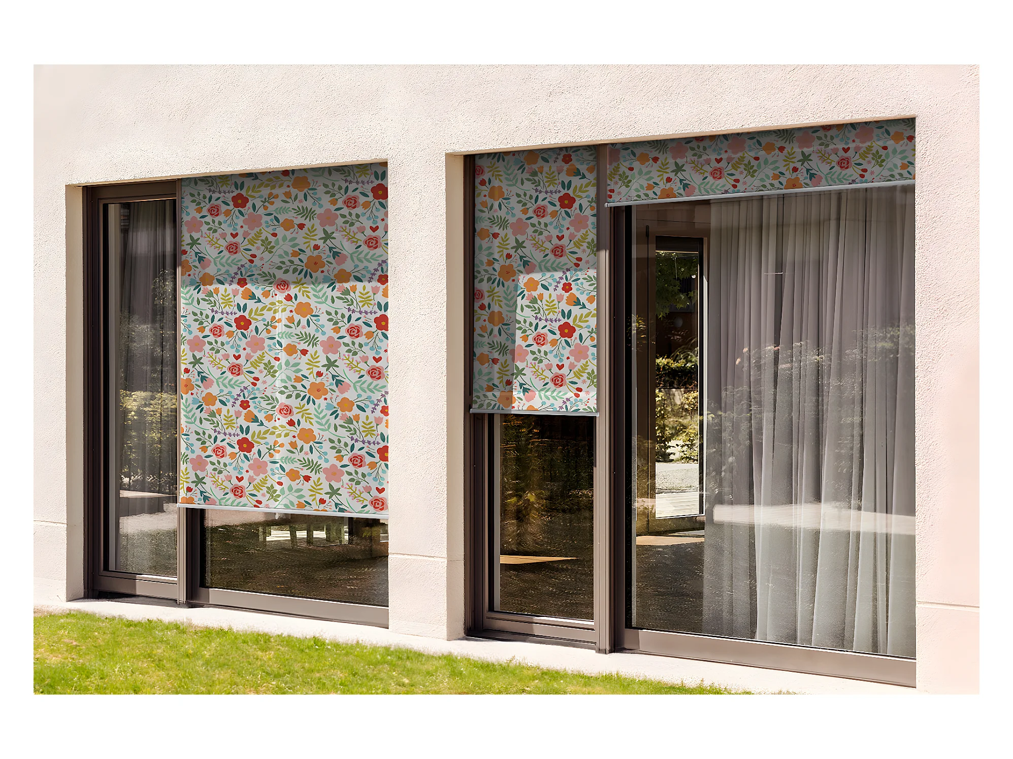 Store enrouleur extérieur moderne - 140x290 cm - Prairie colorée Rideau de balcon, Stores enrouleurs de balcon, Rideau de protection solaire