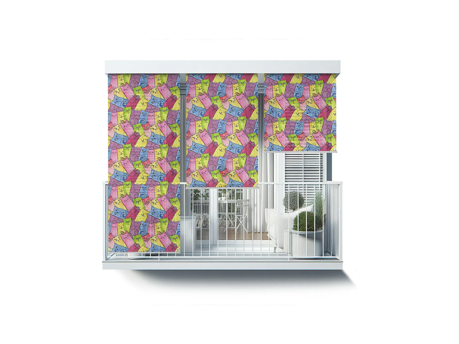 Store enrouleur extérieur unique - 50x290 cm - Fleurs colorées Rideau de balcon, Stores enrouleurs de balcon, Rideau de protection solaire