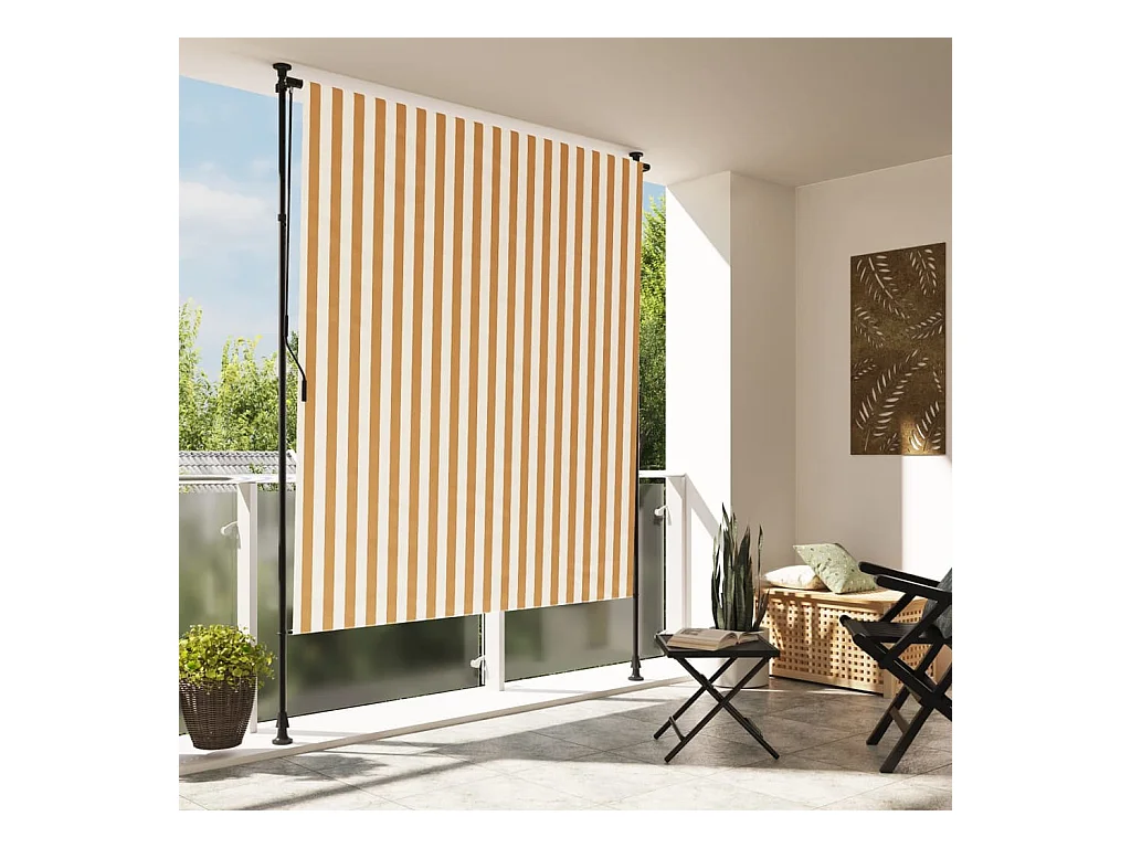 Store roulant d'extérieur orange et blanc 150x270cm tissu acier