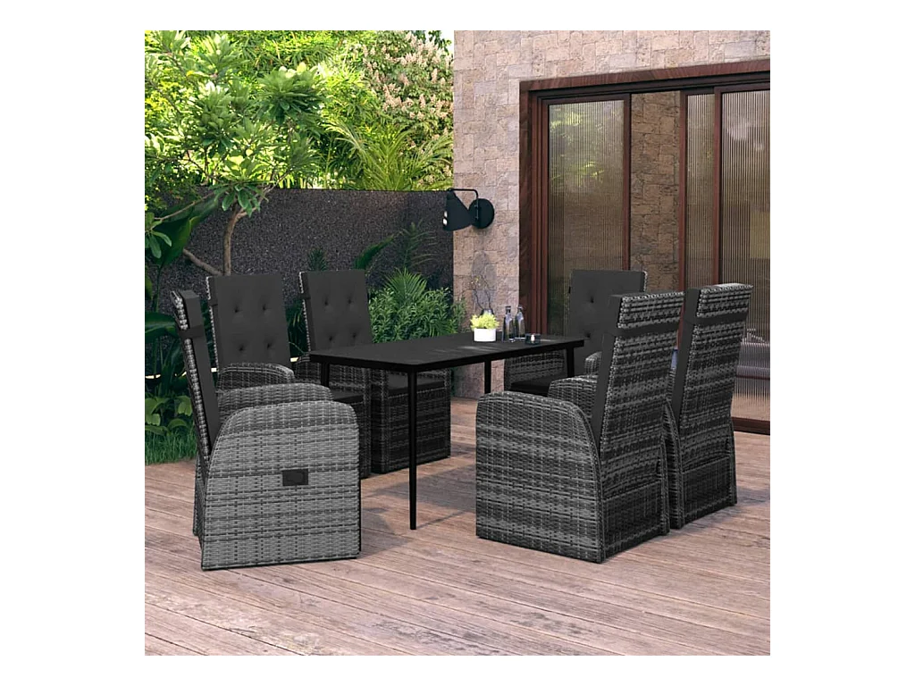 Serafino Ensemble à manger de jardin avec coussins 7 pcs Gris
