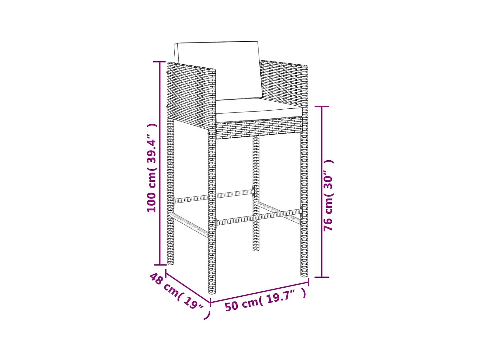 Nylar Ensemble de bar de jardin avec coussins 7 pcs marron poly rotin