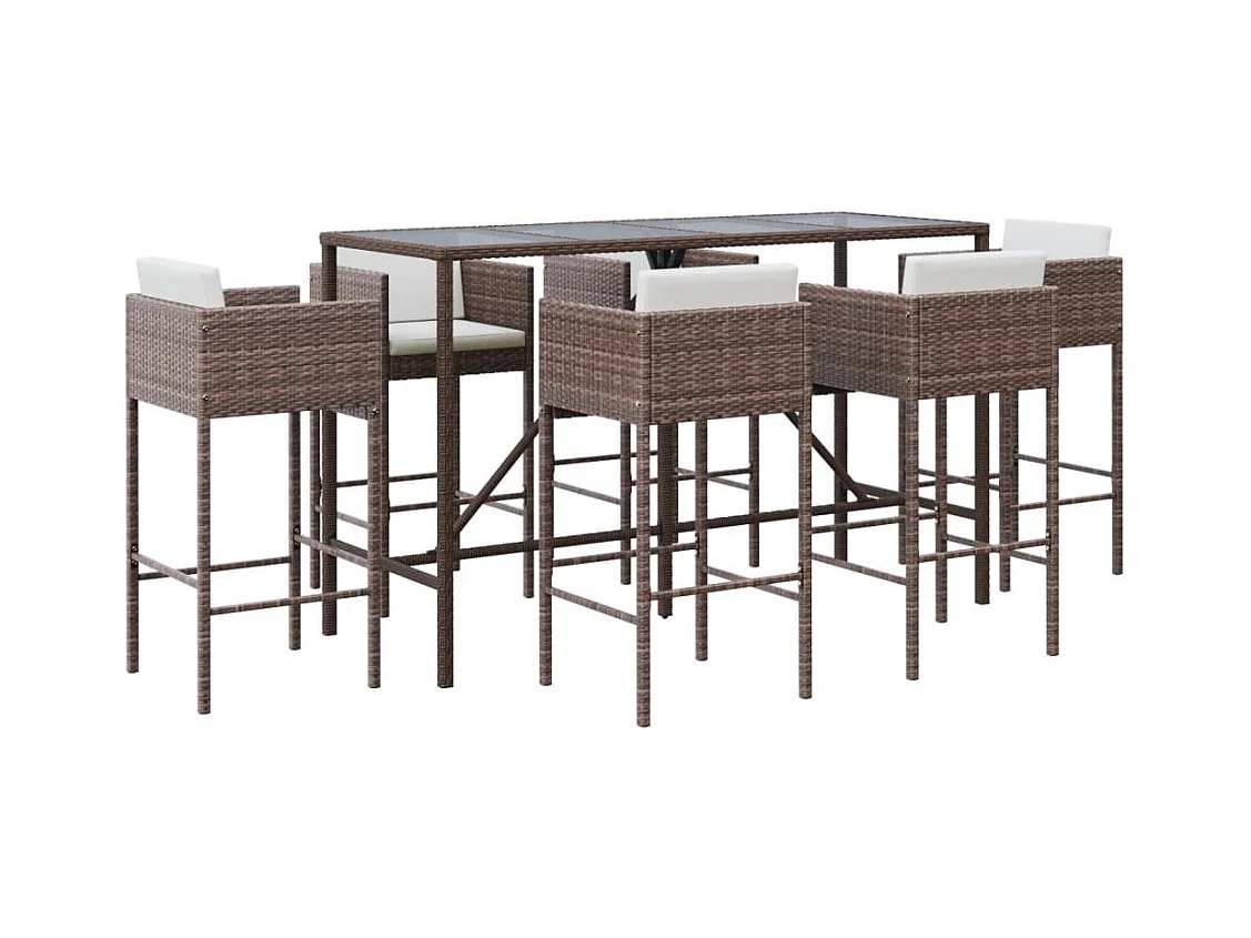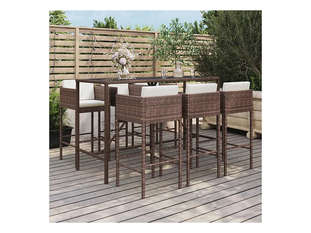 Virrat Ensemble de bar de jardin avec coussins 7 pcs marron poly rotin