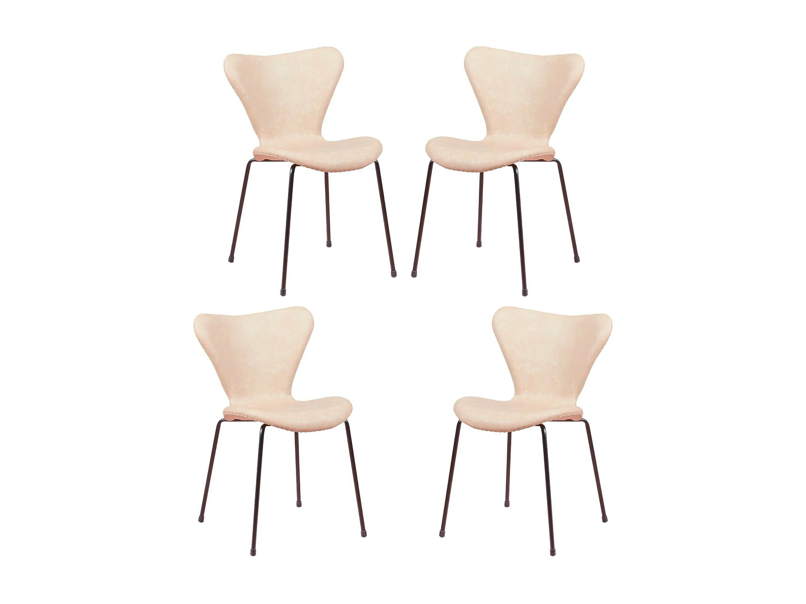 Suite de 4 chaises vintage tapissées en simili cuir - Seven - Beige