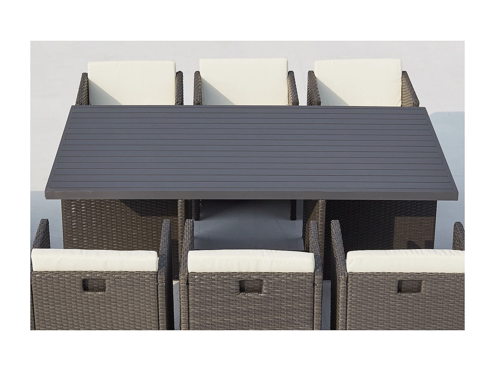Table et chaise 10 places encastrables alu résine gris-blanc SUNSET