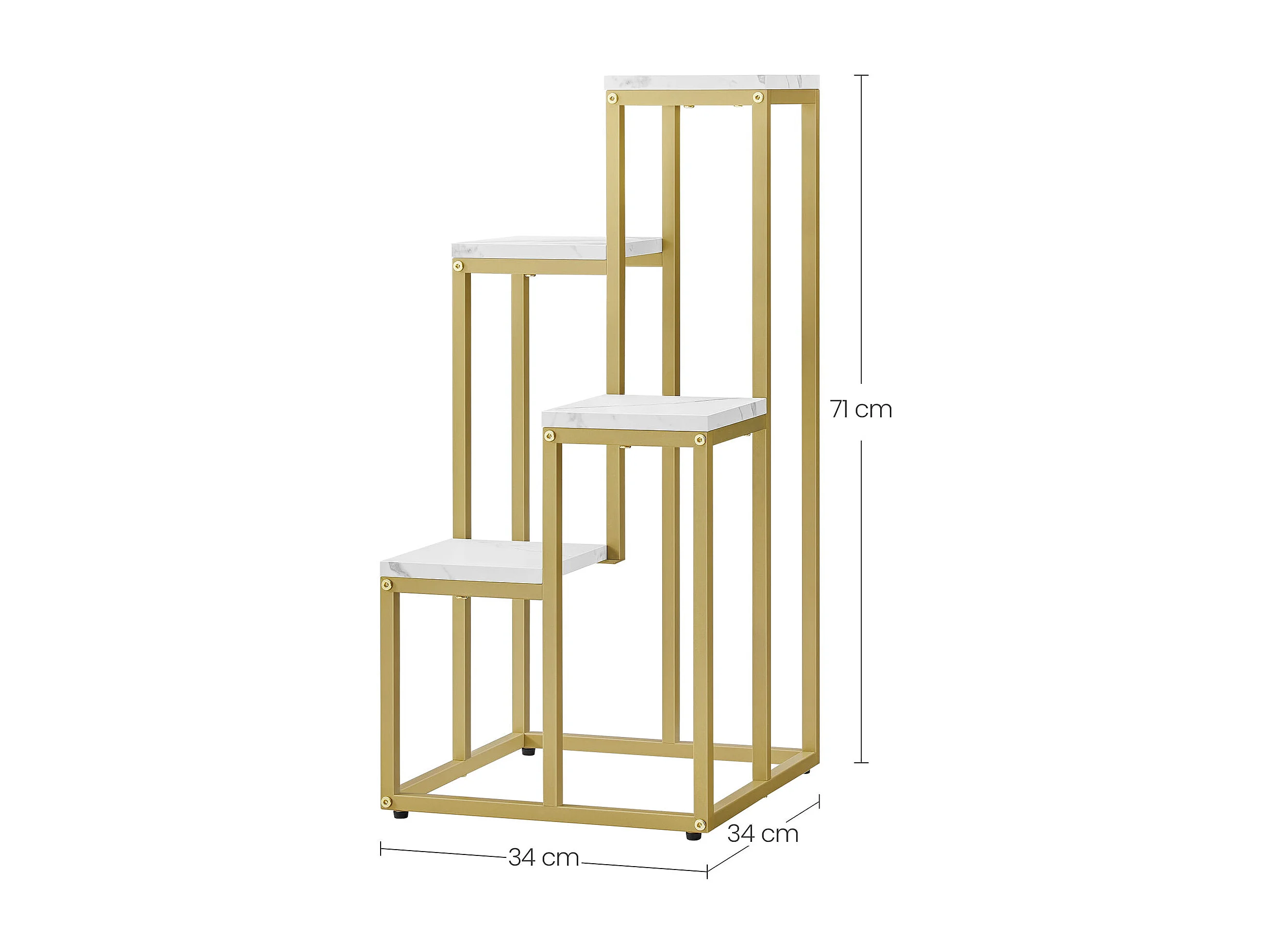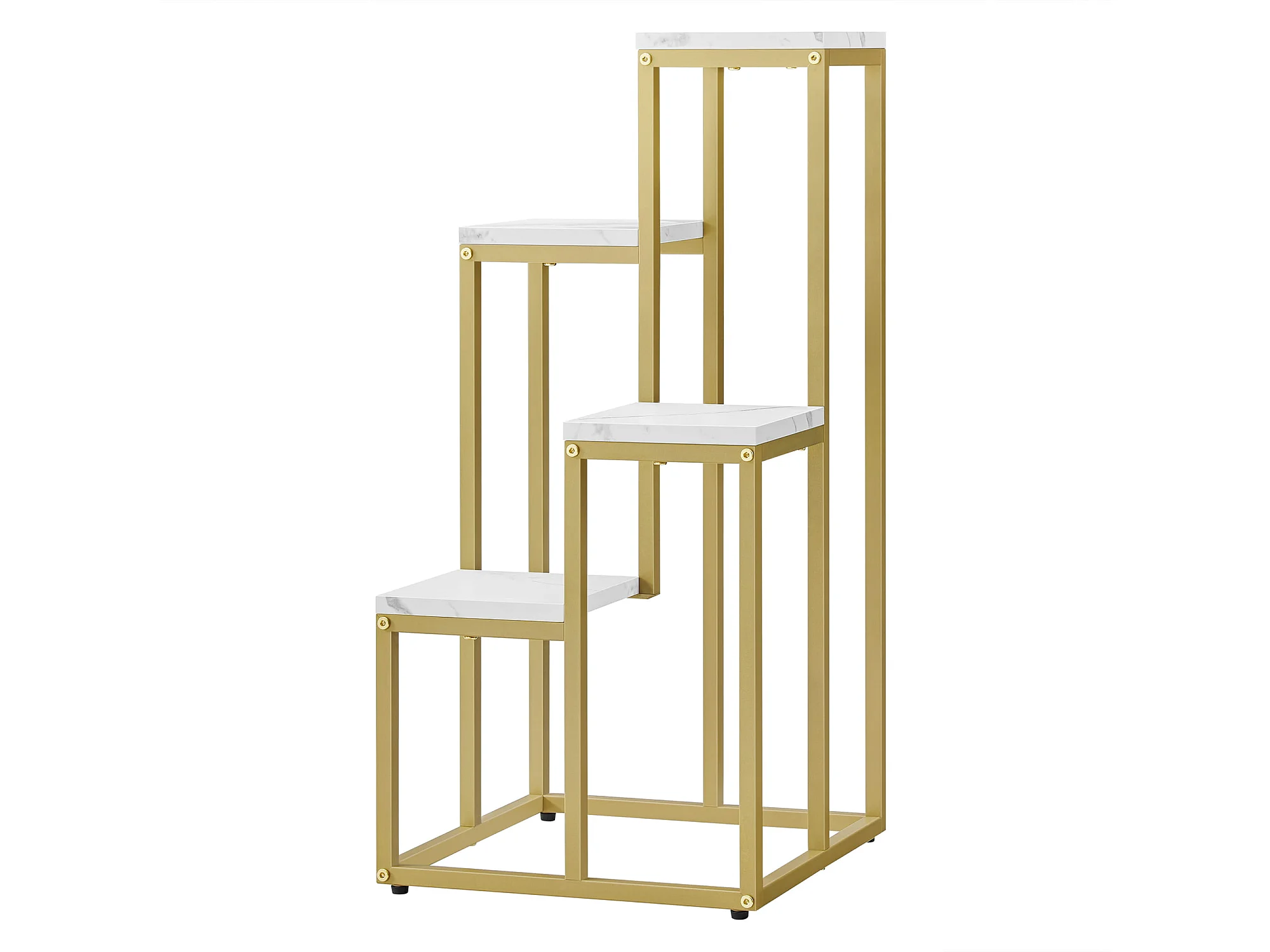 Support à fleurs Valora à 4 étagères, design moderne en acier doré et marbre.
