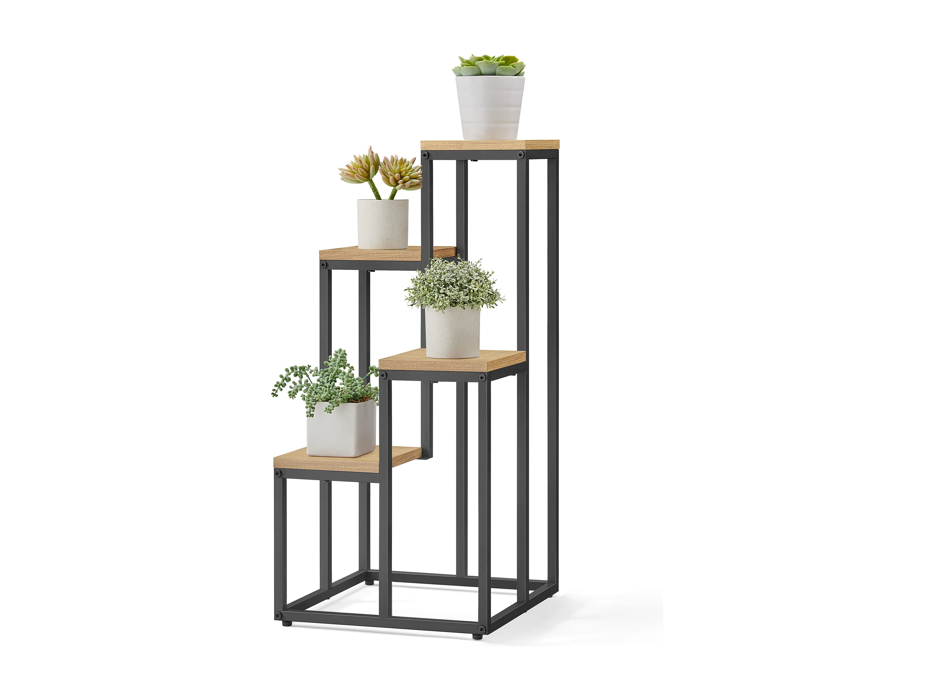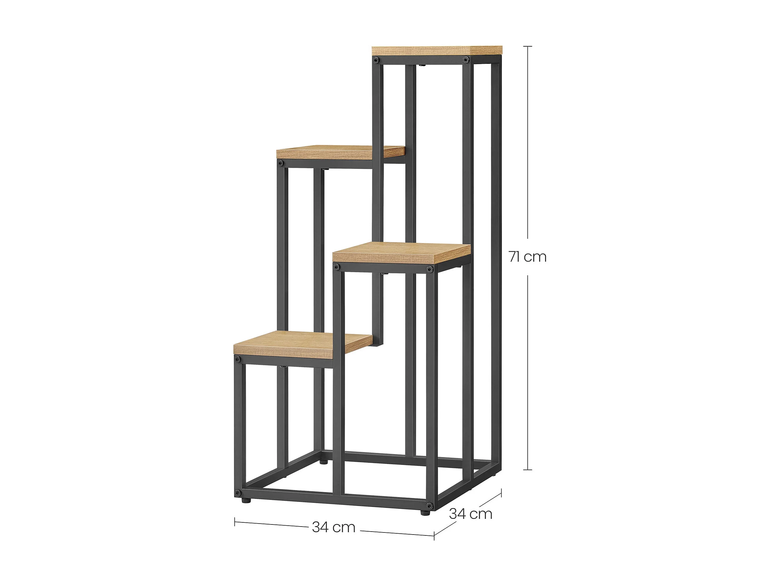 Support à fleurs Valora à 4 étagères, style industriel chêne noir, pour salon