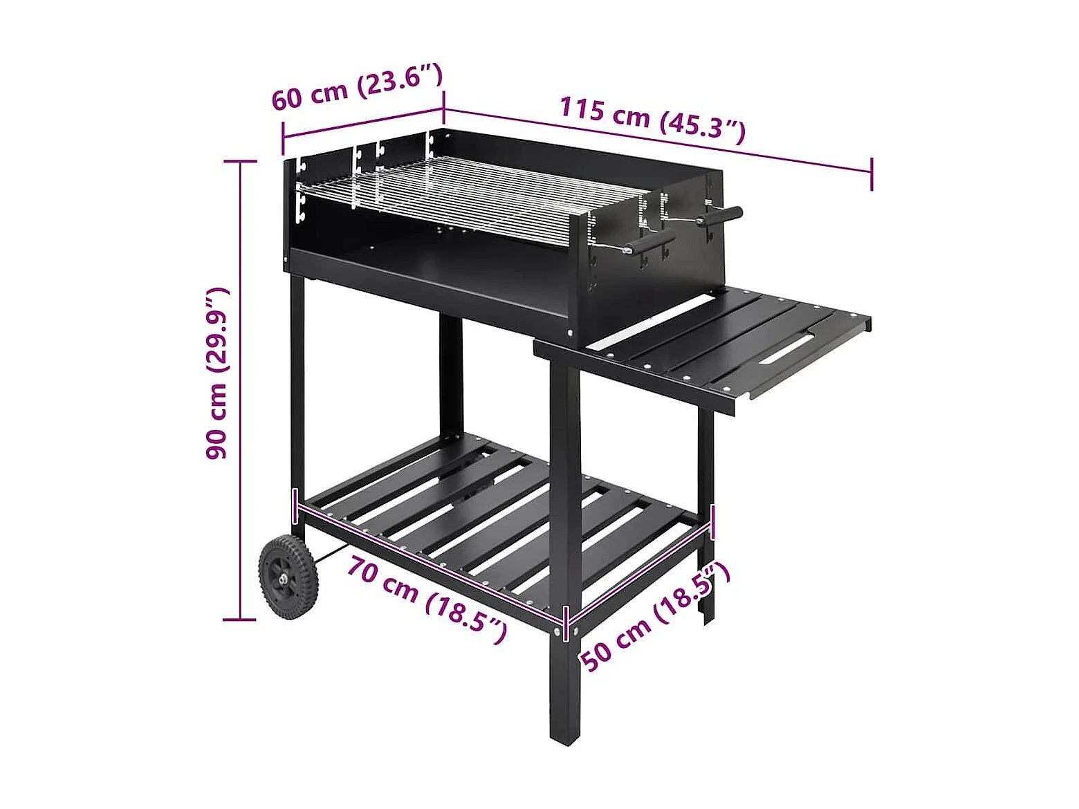 Barbecue au charbon de bois avec étagère inférieure Noir