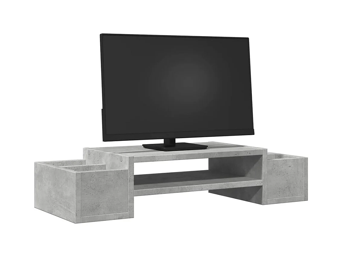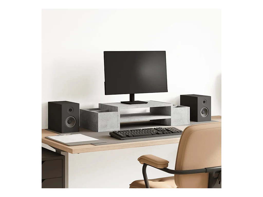 Support de moniteur avec rangement gris béton bois d'ingénierie