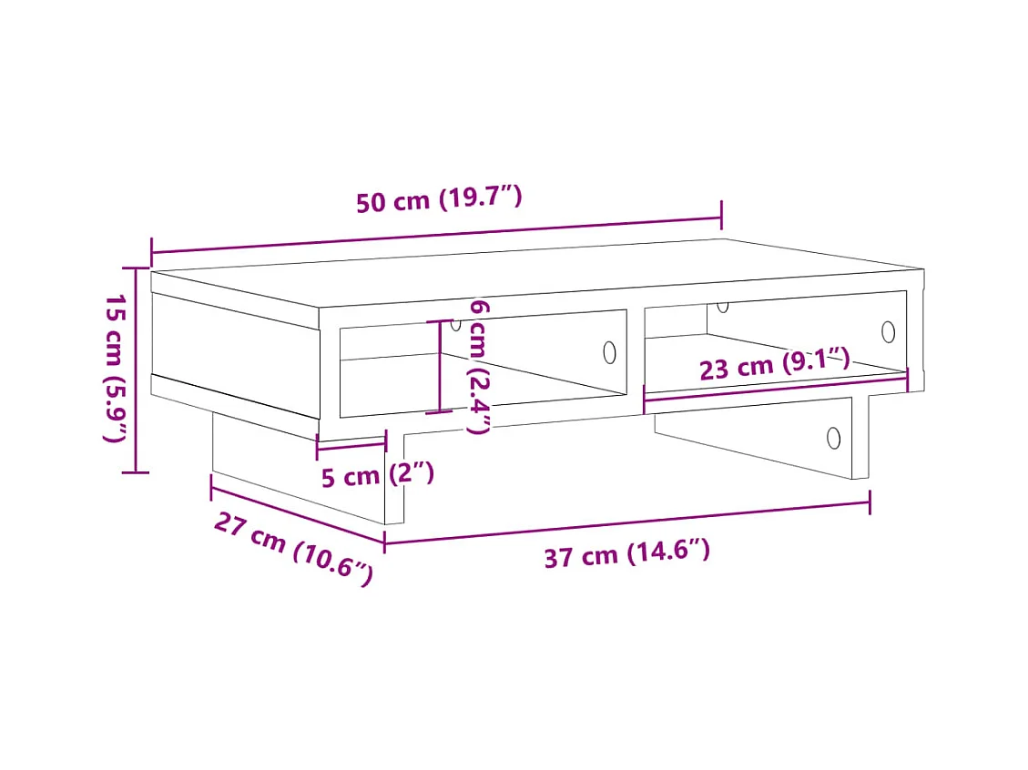 Support de moniteur chêne artisanal 50x27x15 cm bois ingénierie