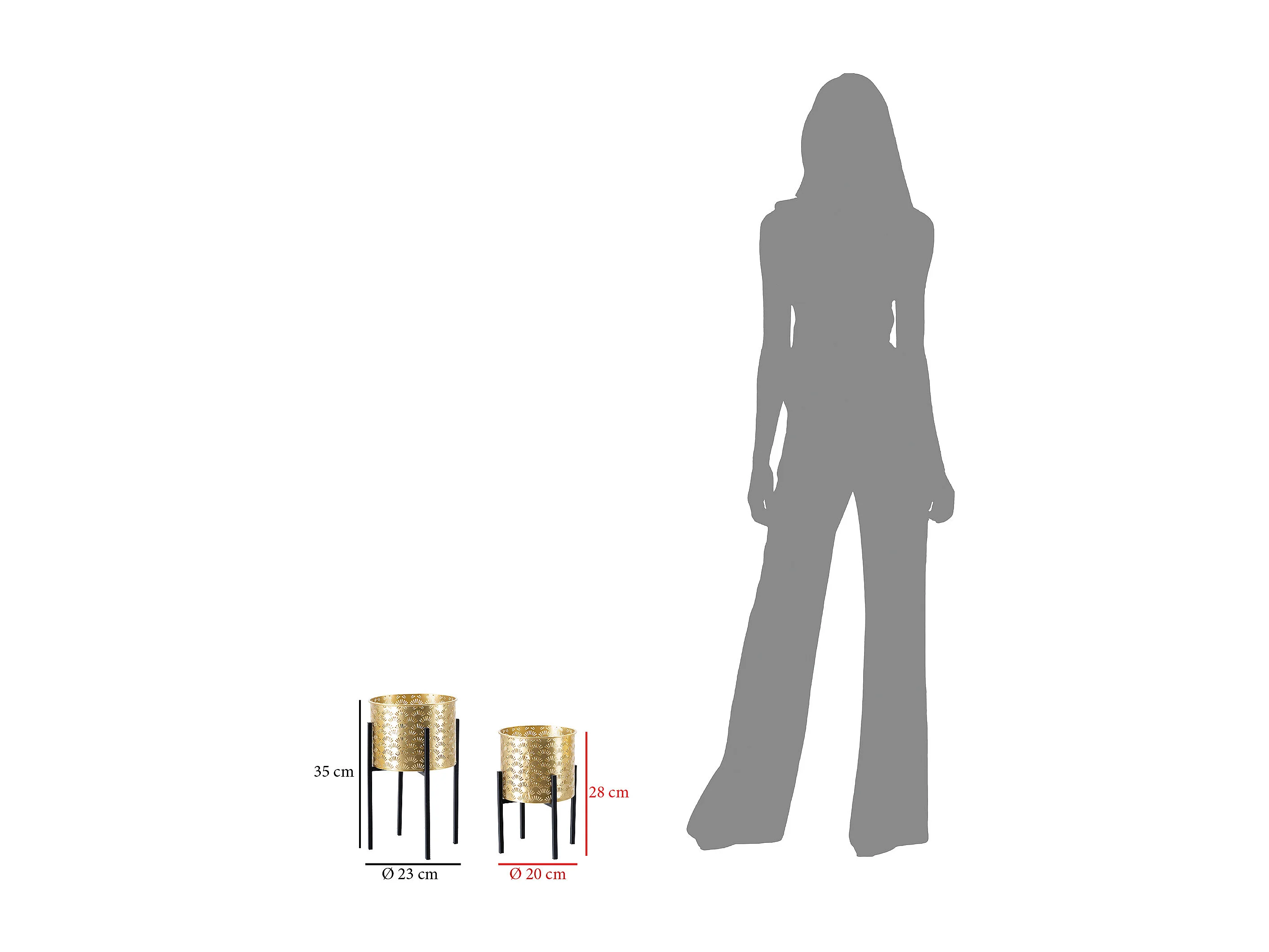 Lot de 2 Cache-Pots sur Pied "Glissy" 38cm Or & Noir
