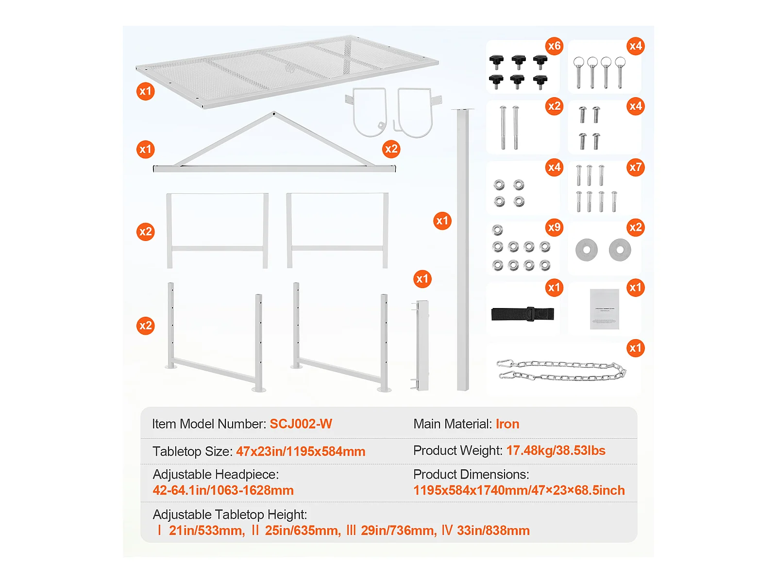 Support l'Élagage des Chèvres SucceBuy, Hauteur 53,3 - 83,8 cm, 119,3 x 58,4 cm, Plateau de Table Blanc